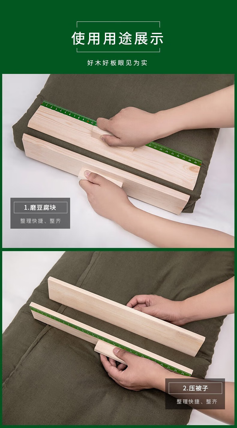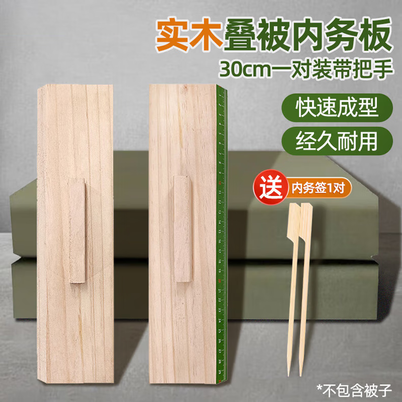 贞喜气 内务夹板 叠被神器 豆腐块叠被辅助工具 定型宿舍学生军训实木板 30cm带把手一对
