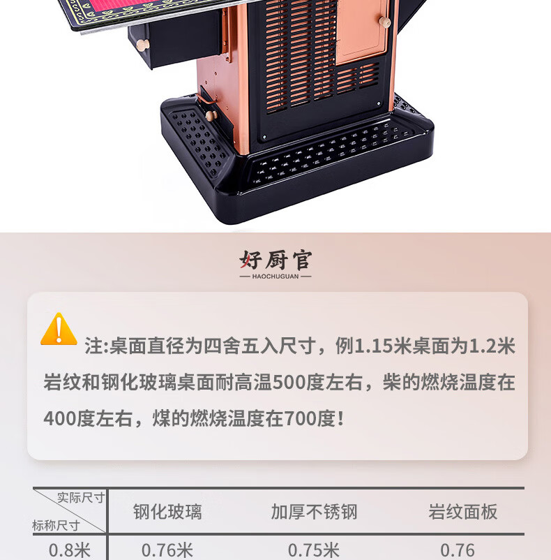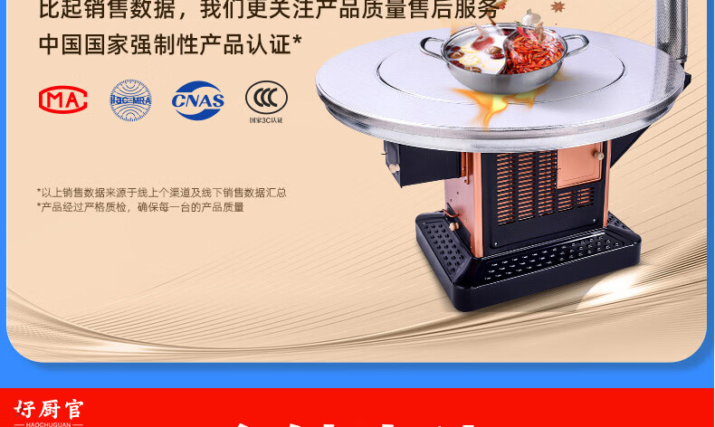 好厨官加厚气化炉高端燃烧柴火炉农村取暖桌无烟柴煤两用烤火取暖炉 0.8米防爆单层(柴煤两用)