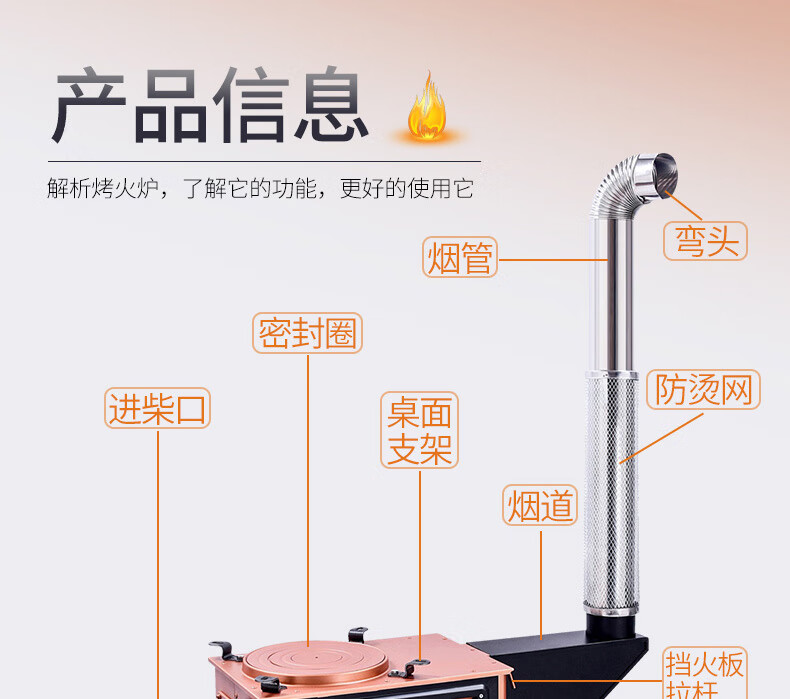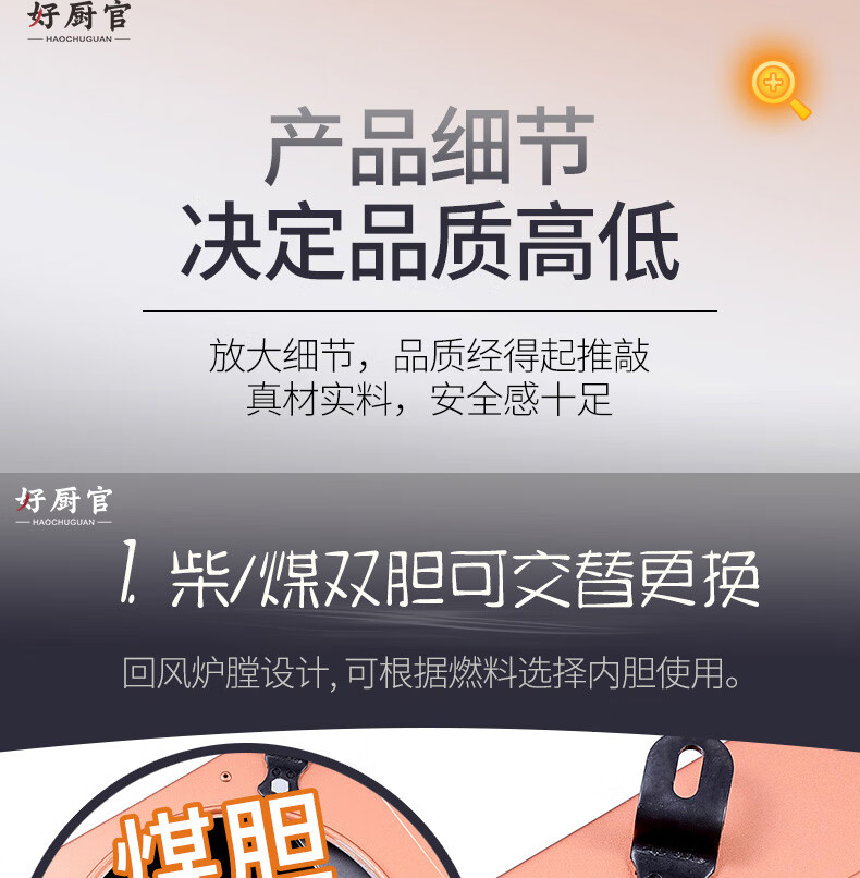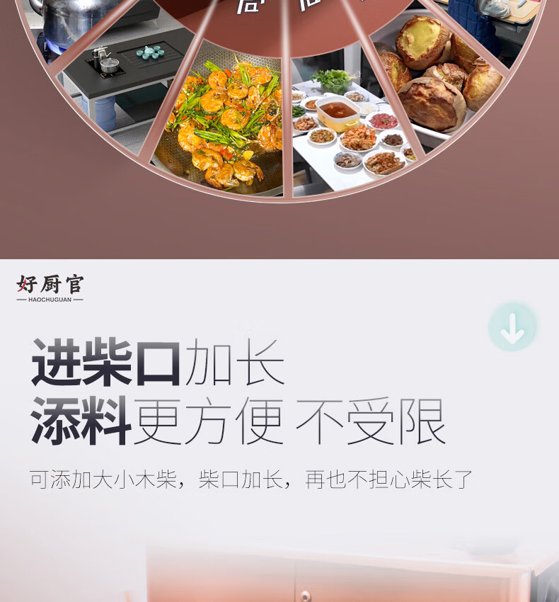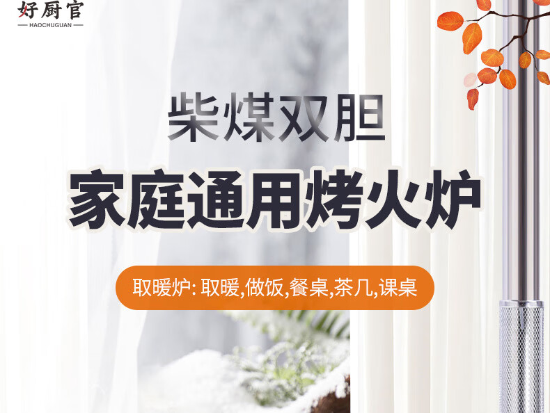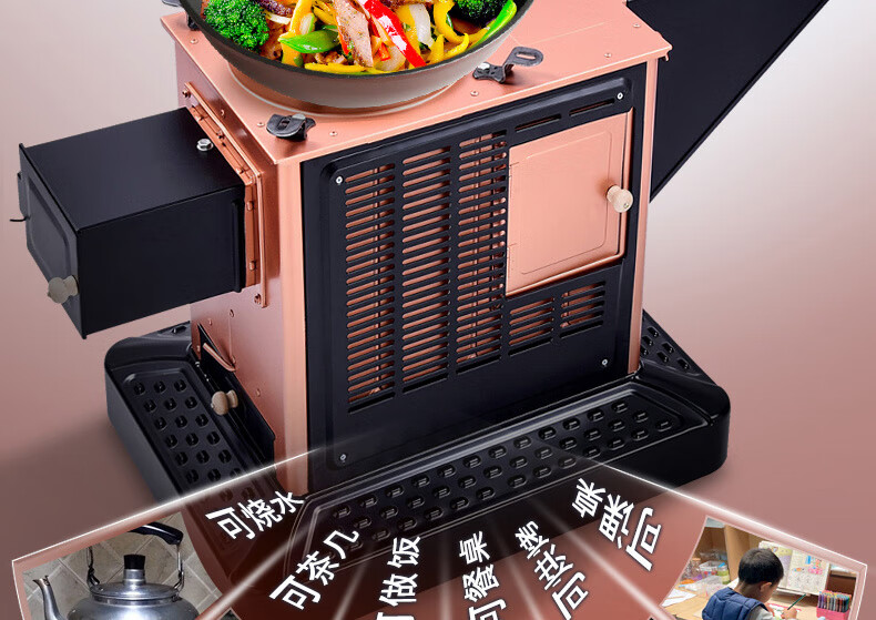 好厨官农村取暖炉冬季家用回风炉柴火灶室内柴煤两用无烟节能柴火采暖炉 1米不锈钢丨单桌面丨柴煤两用