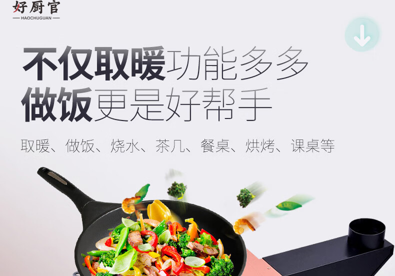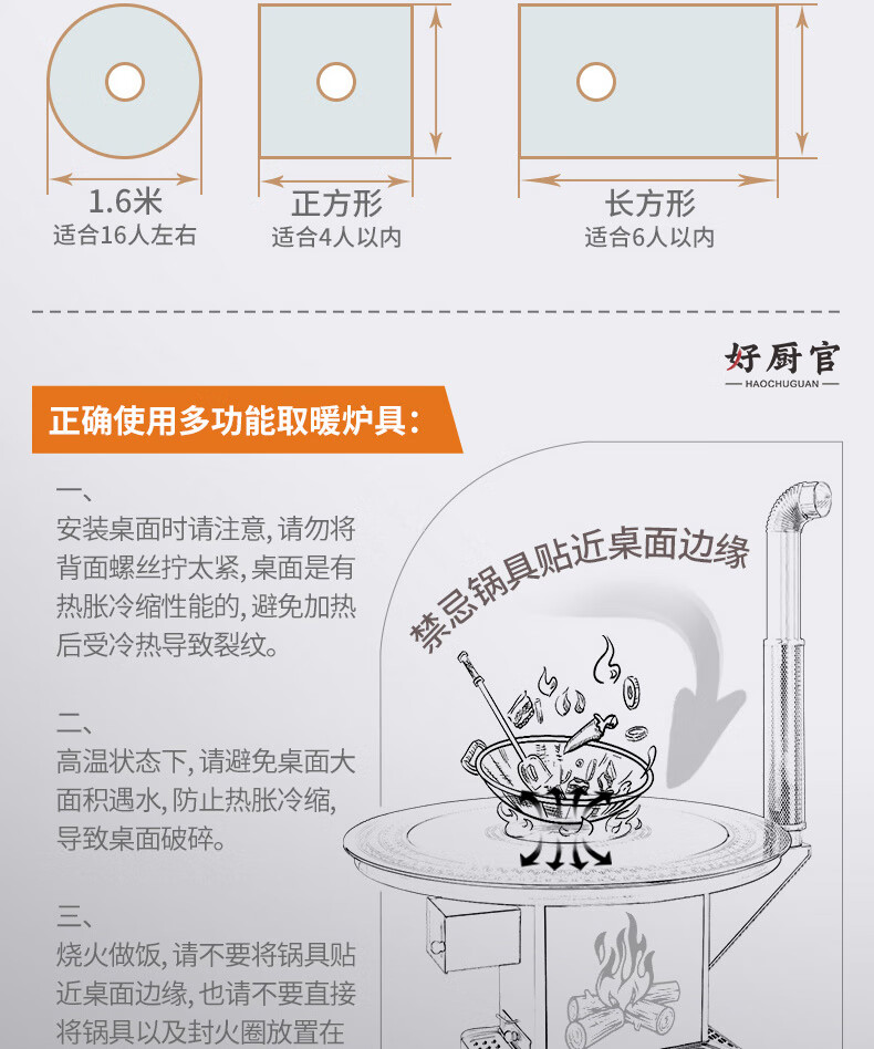 好厨官柴火炉农村家用无烟取暖桌烤火柴煤两用冬季室内节能取暖炉回风炉 0.9米不锈钢方形【柴煤两用】