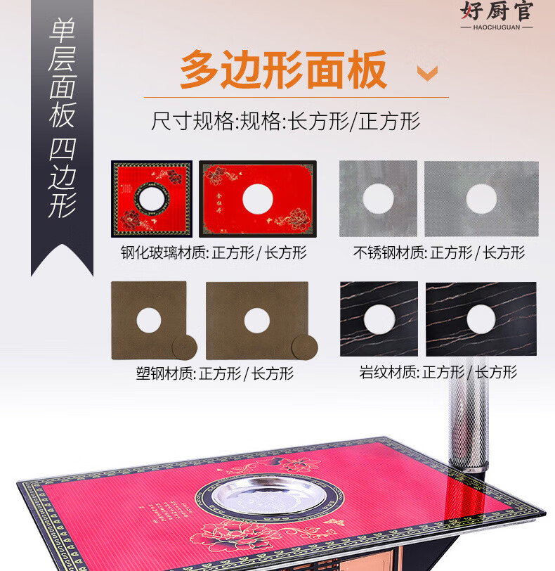 能师傅【送货上门】气化炉家用室内烤火炉柴煤两用节能无烟柴火炉灶农村 长方形防爆玻璃或不锈钢桌面可选【柴煤两用 加厚款】