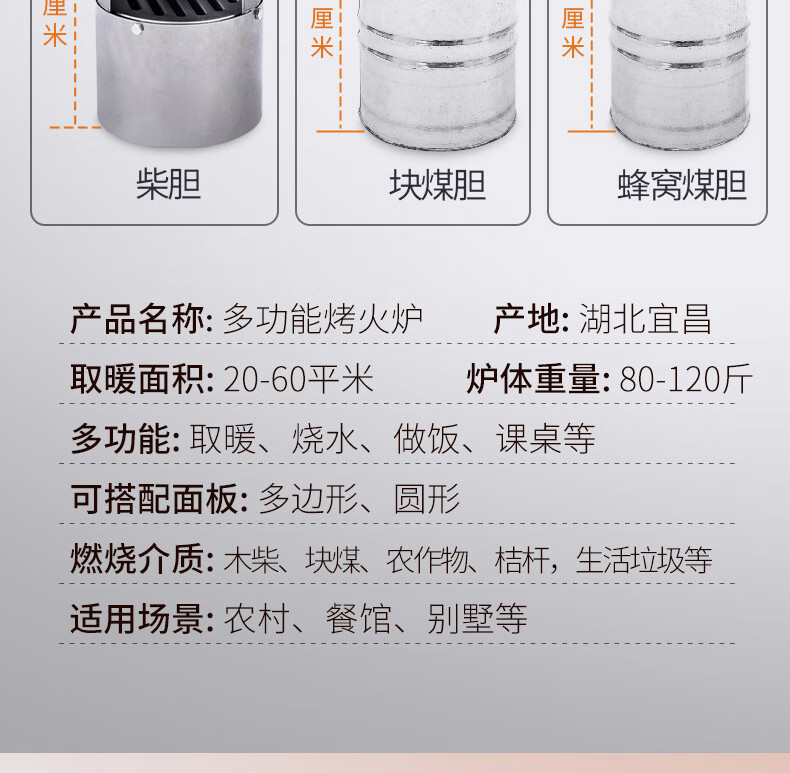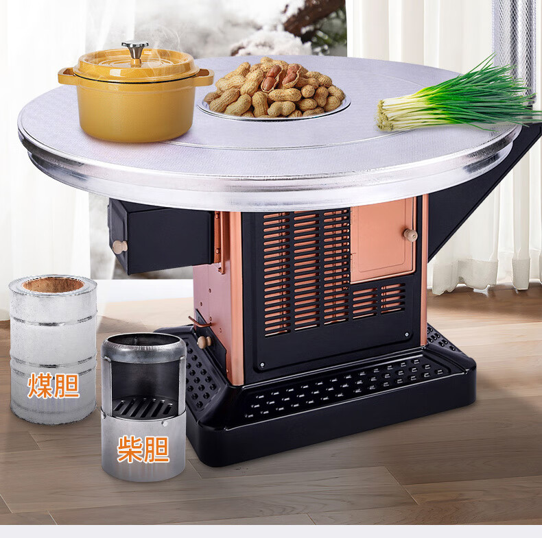 璞灶旺冬季柴火灶加厚加高农村取暖炉烧柴家用节能柴煤两用多功能回风炉 1米圆桌不锈钢(柴火炉)