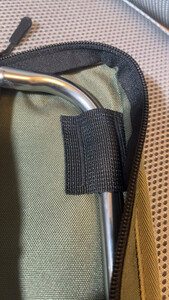 椅子布料看起来很耐磨,椅垫还有一层夹心软垫层,舒适性多少增加了,7075铝合金光泽轻量,买来坐火车无座的,很够用!