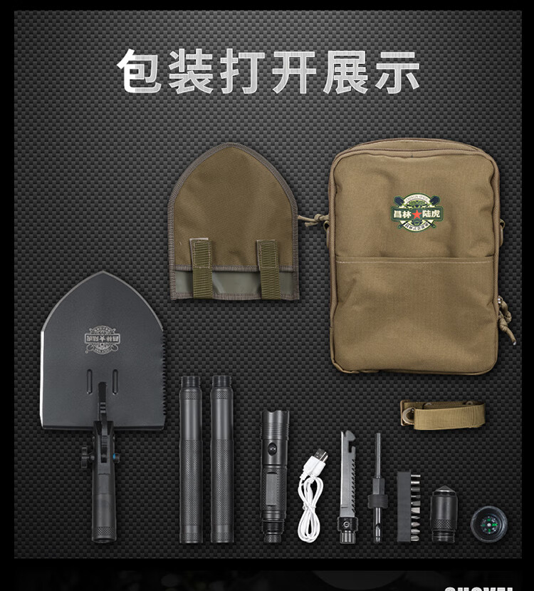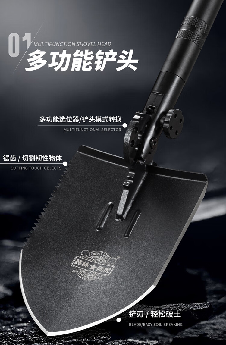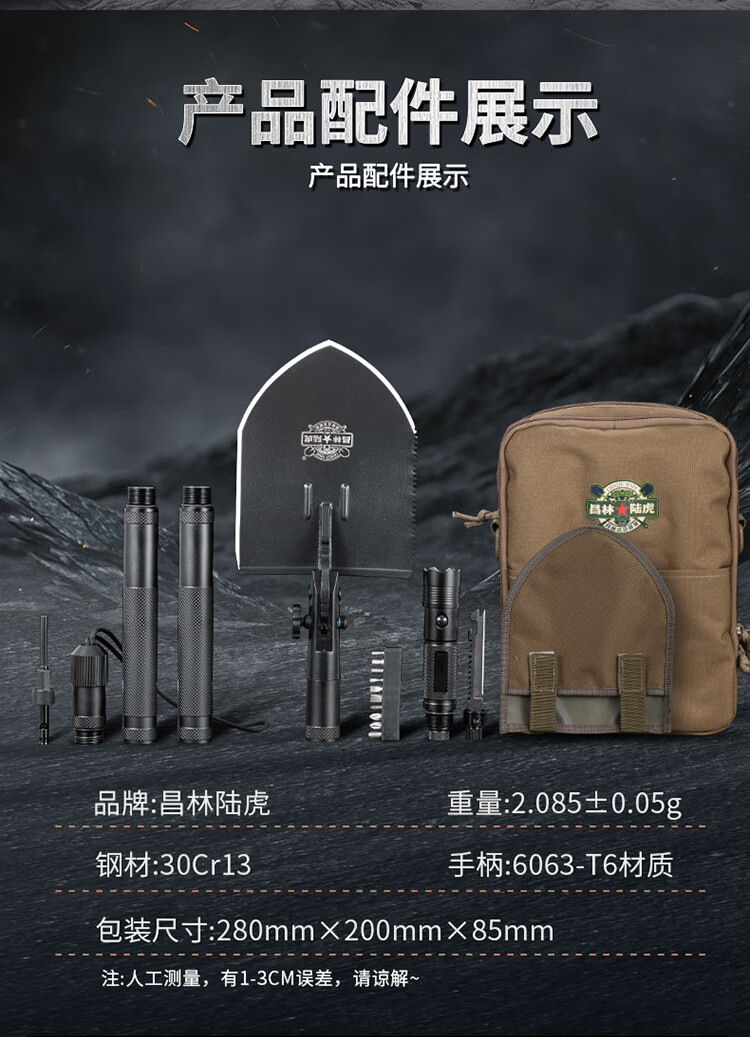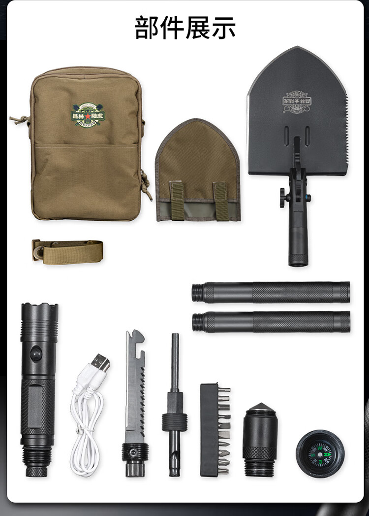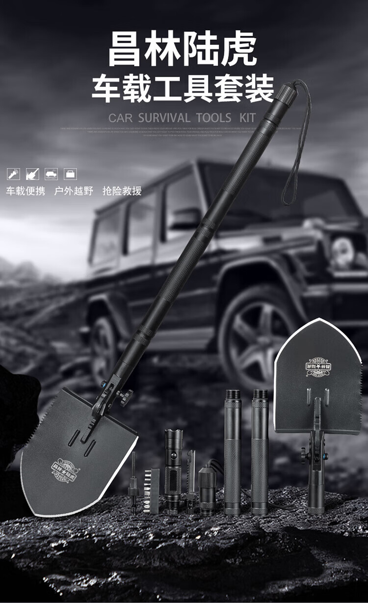 昌林昌林陆虎工兵铲1422高端带手电大号铁锹户外露营车载救援工具
