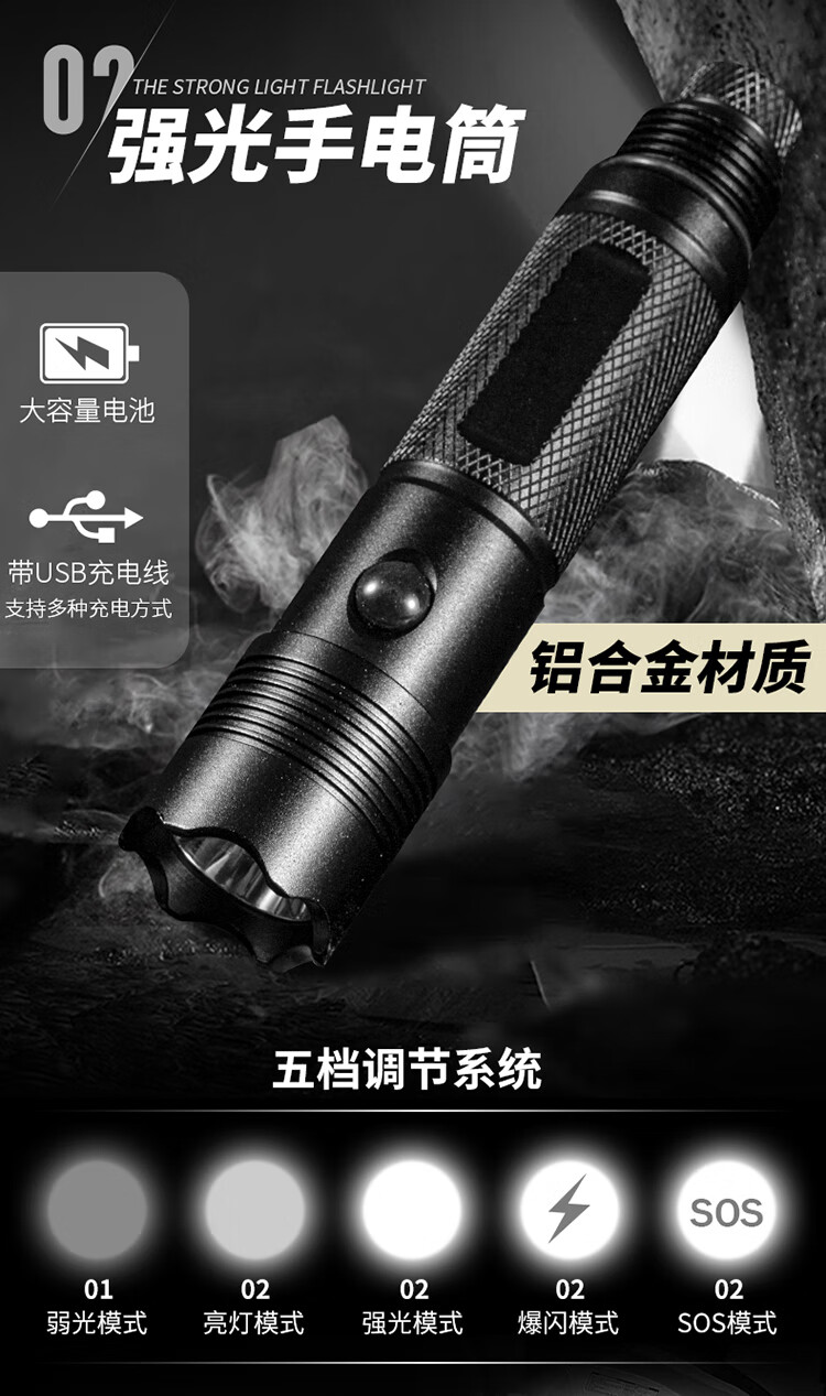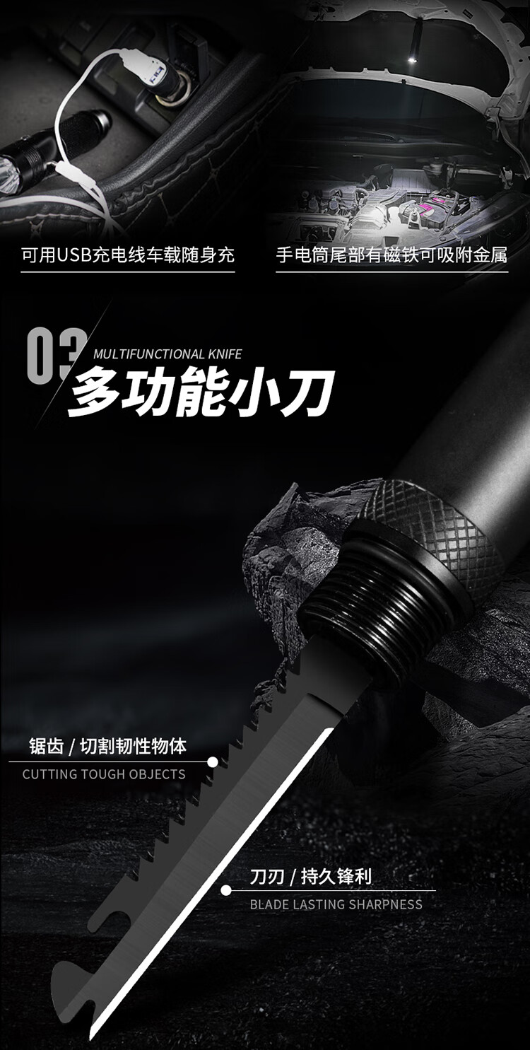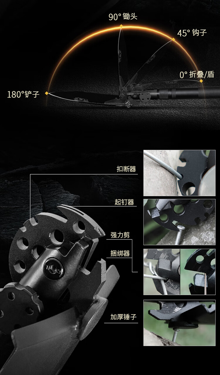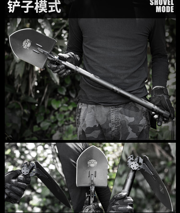 昌林昌林陆虎工兵铲1422高端带手电大号铁锹户外露营车载救援工具