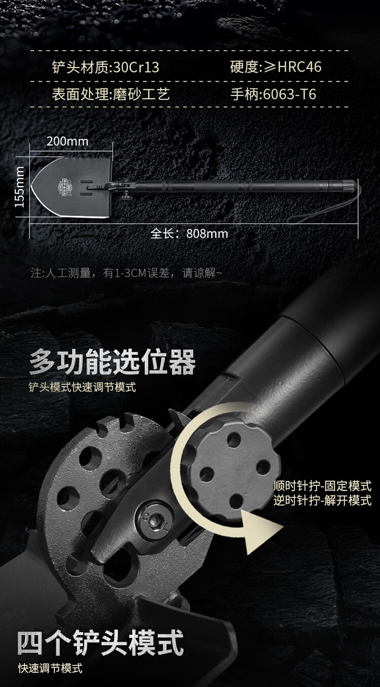 昌林308工兵铲中国多功能锹战备锹兵工铲子户外防身车载露营工具用品 308S2款20大功能碳钢手柄812mm