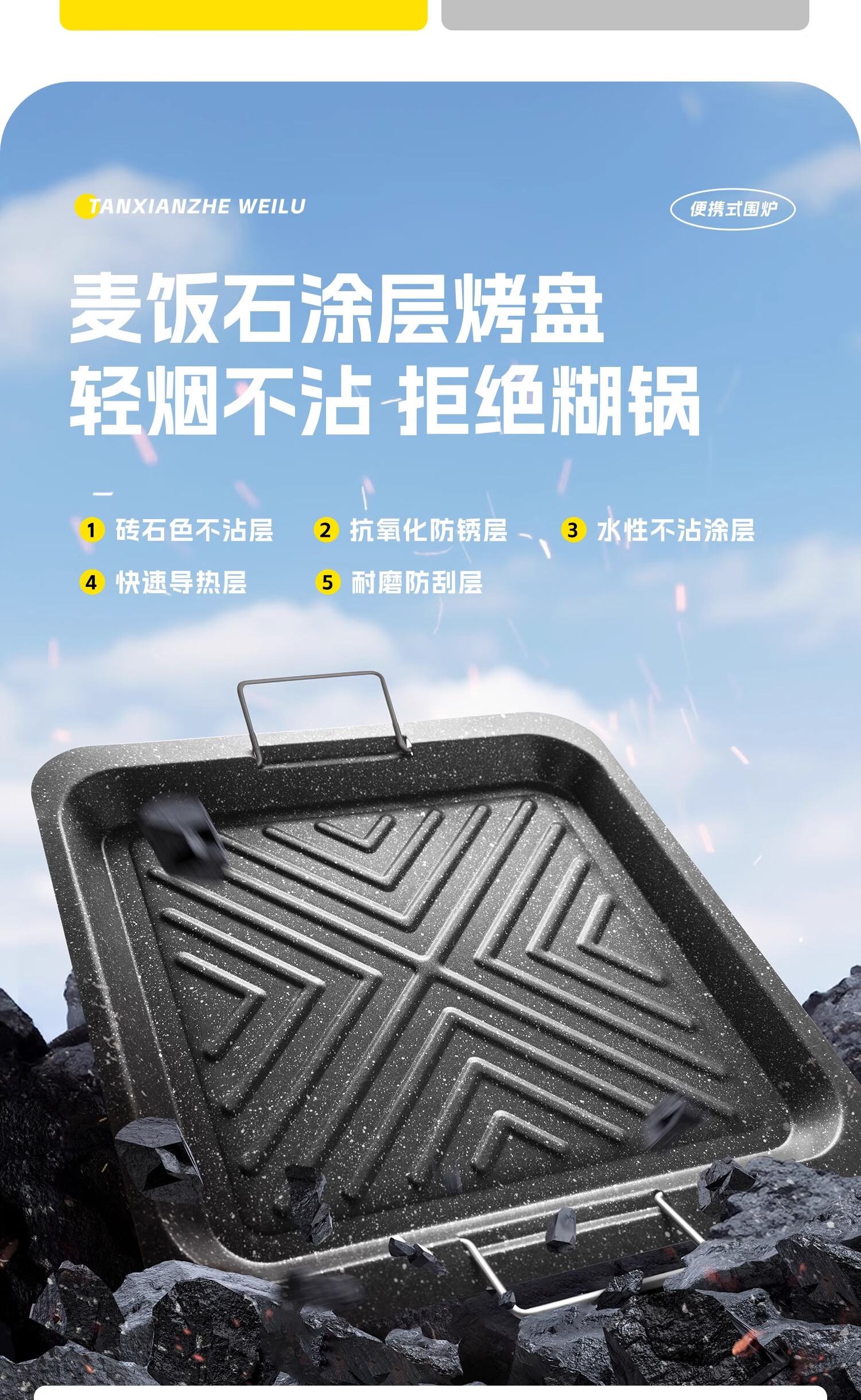 北山狼 烧烤炉户外围炉煮茶套装露营家用韩式碳烤炉 黑色A1