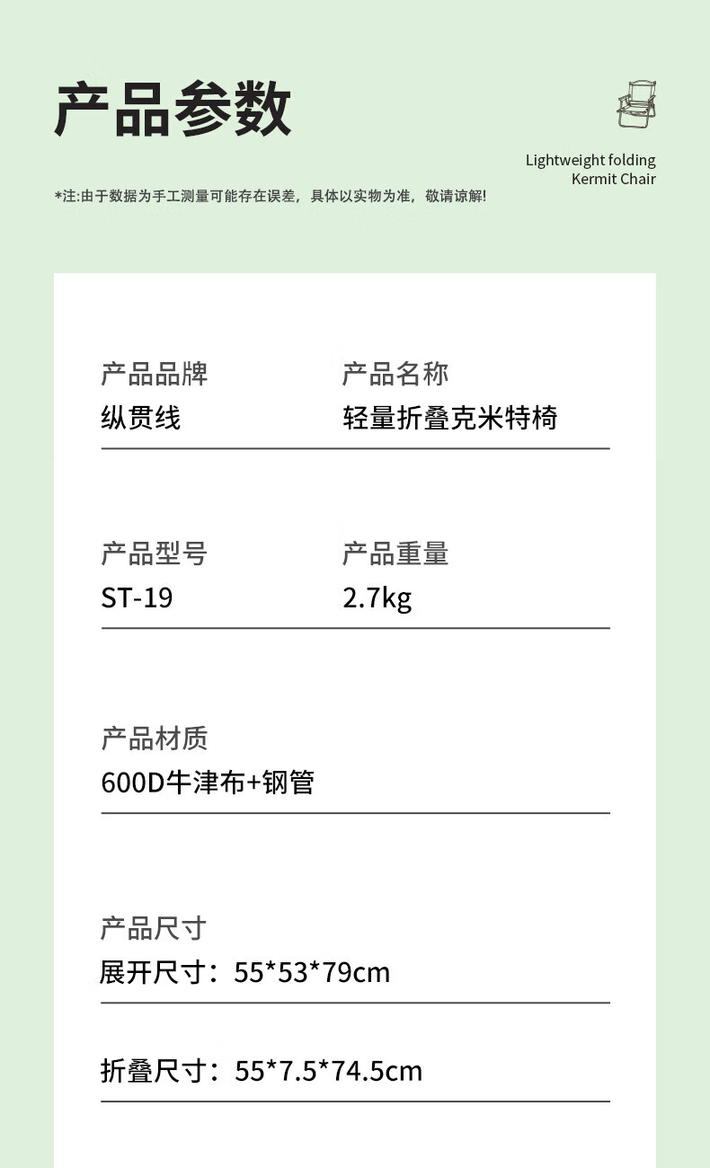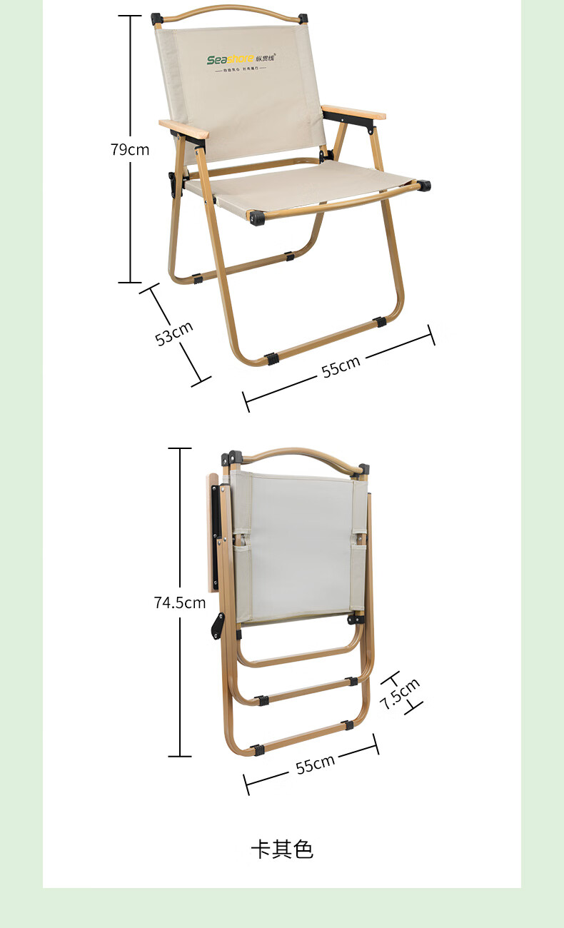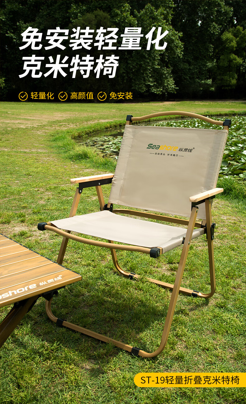 Seashore 纵贯线户外折叠椅露营克米特椅可携式沙滩躺椅摆摊轻便桌椅ST-19 轻量折叠克米特椅