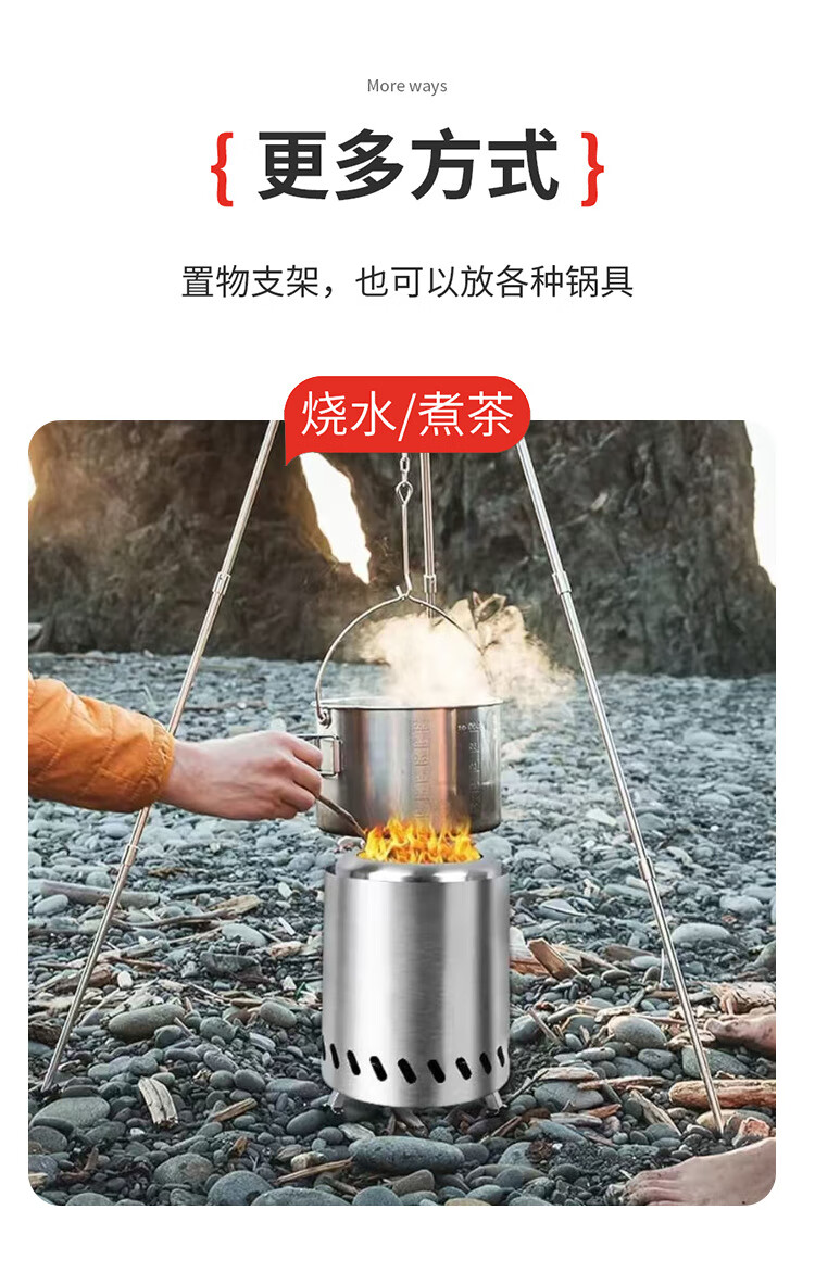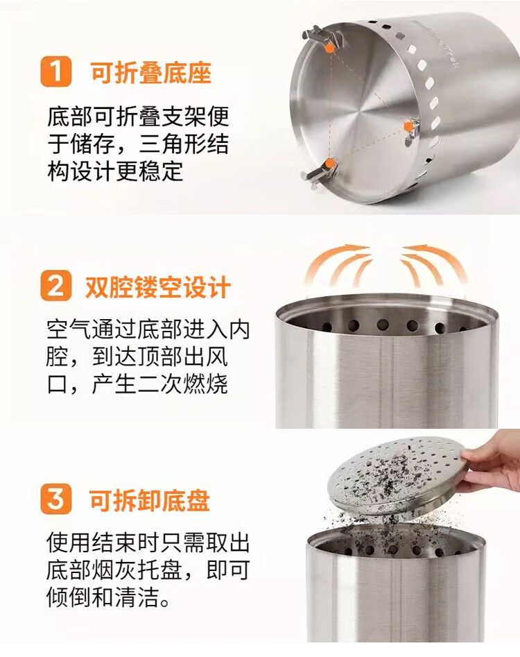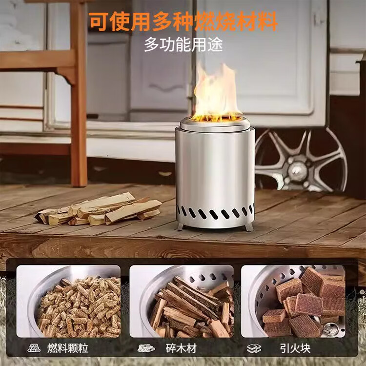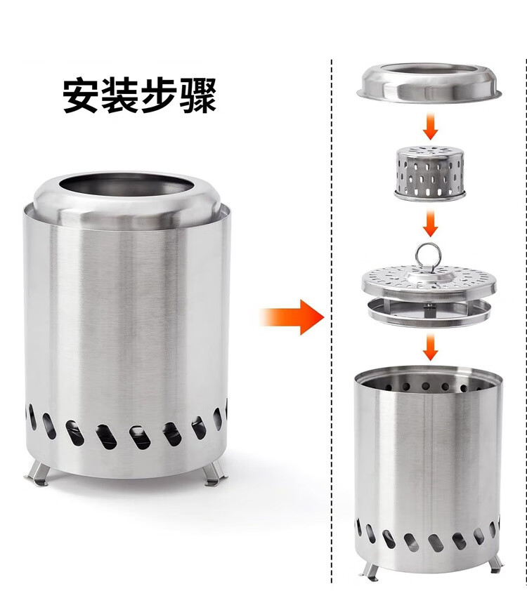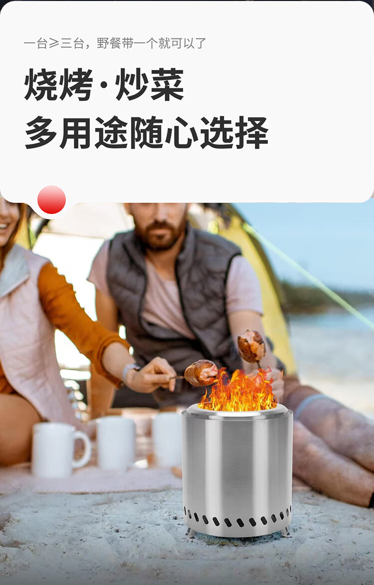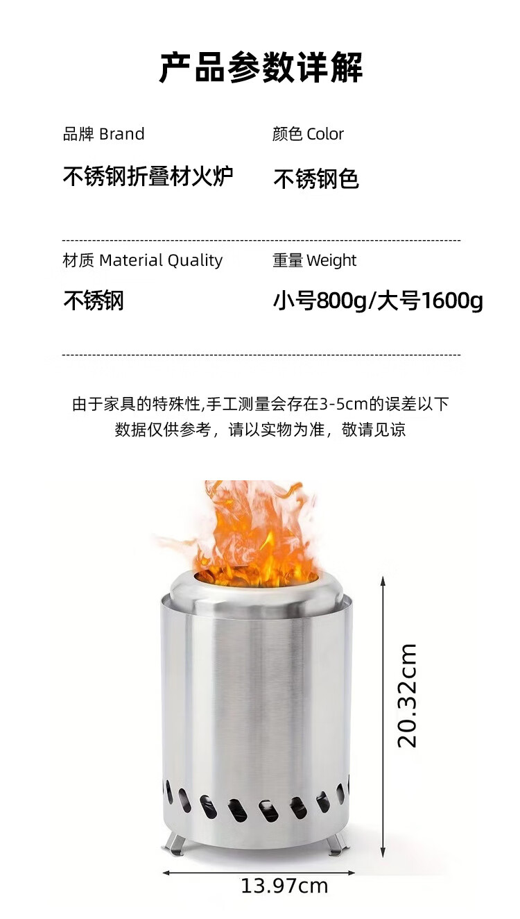 桌面款便携无烟炉户外不锈钢柴火炉气化炉原理二次燃烧可拆卸方便 不锈钢原色