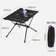 山头林村户外折叠桌子蛋卷露营便携式超轻量化餐桌战术野外茶桌铝合金小型 黑色尼龙网布可插水杯