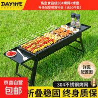 烧烤炉烤炉烧烤架家用户外折叠便携式全套工具庭院不锈钢加厚烤肉 特大号折叠款【食品级不锈钢网】+煎盘+12配件