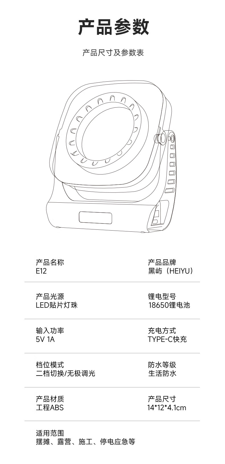 HEIYU黑屿磁吸式COB工作灯充电汽修维修超亮强光长续航应急生存装备LED露营 E11标准版丨800流明丨2500mah