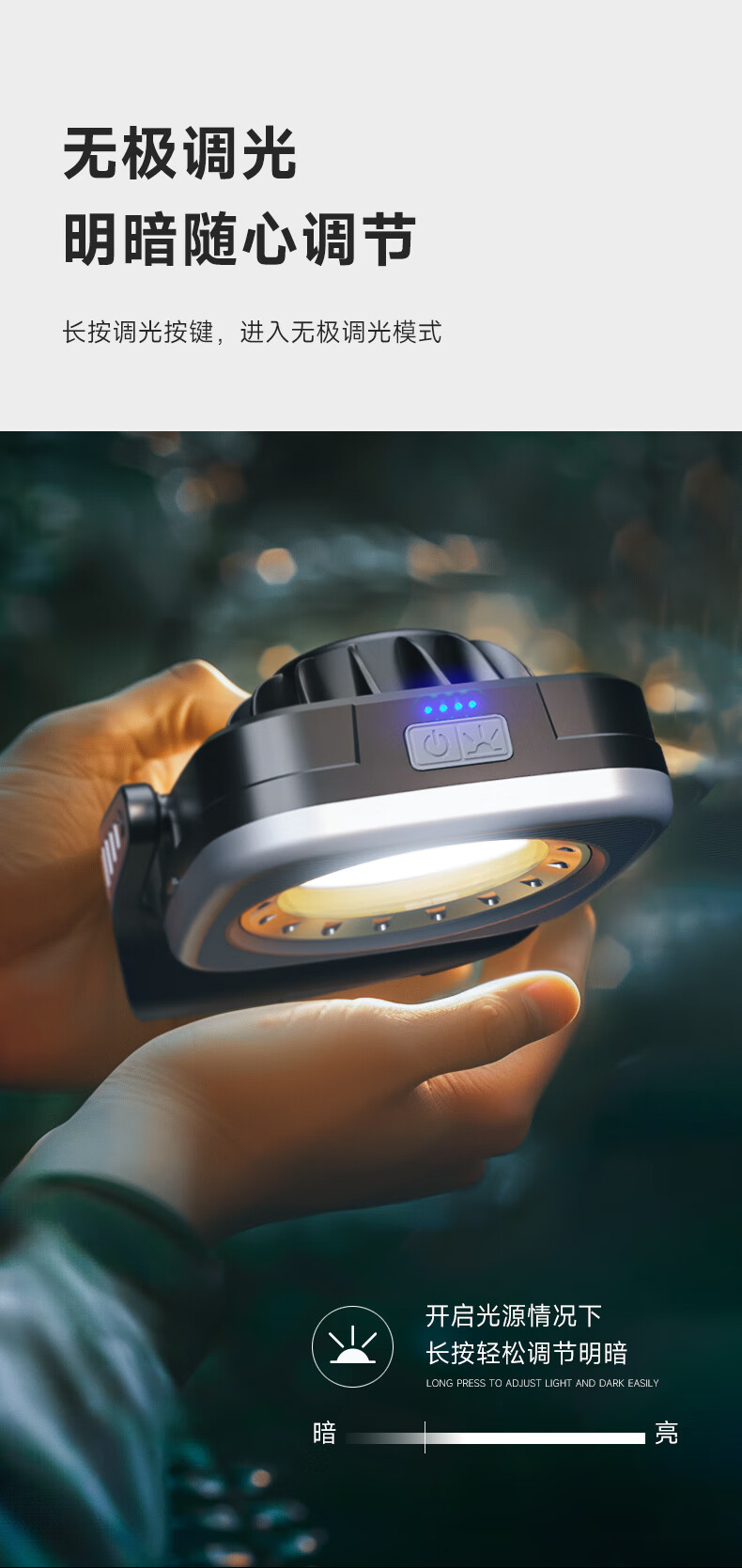 这是我用过最好的一个工作灯,照射面积大,可以无极调光,磁吸力度强大可以牢牢固定,很满意。
