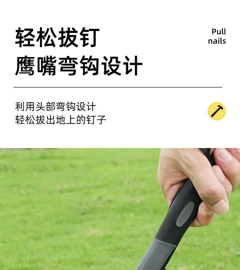 这款地钉锤颜值在线,握着手感也不错,抜钉的效果很不错,在手上用着很舒服,带出门露营敲天幕的钉子用起来很好的,好评