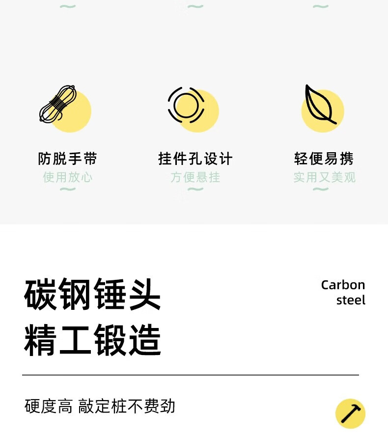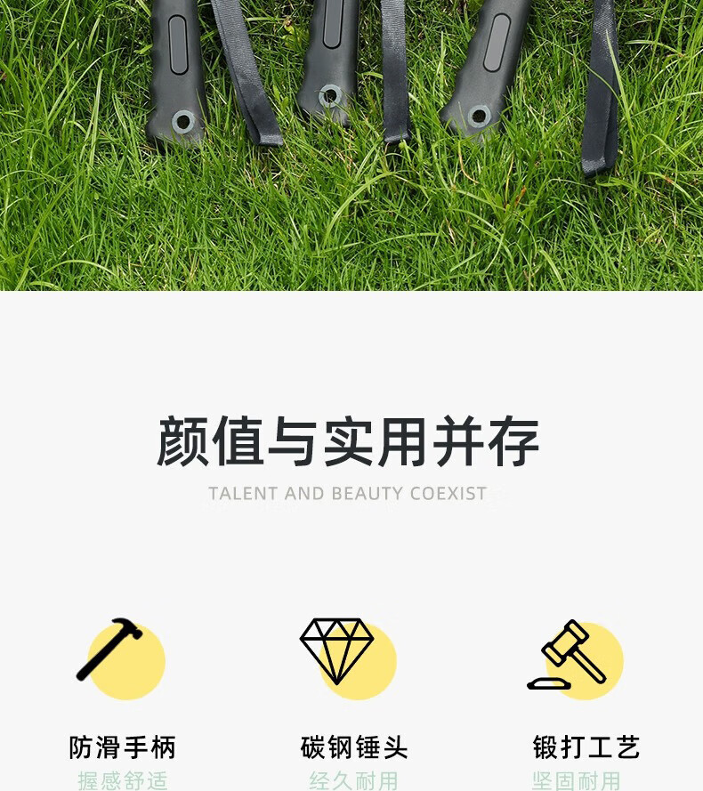 看着质量还不错,露营必备,再也不用每次找块石头去敲钉子,还防脱,强烈推荐!