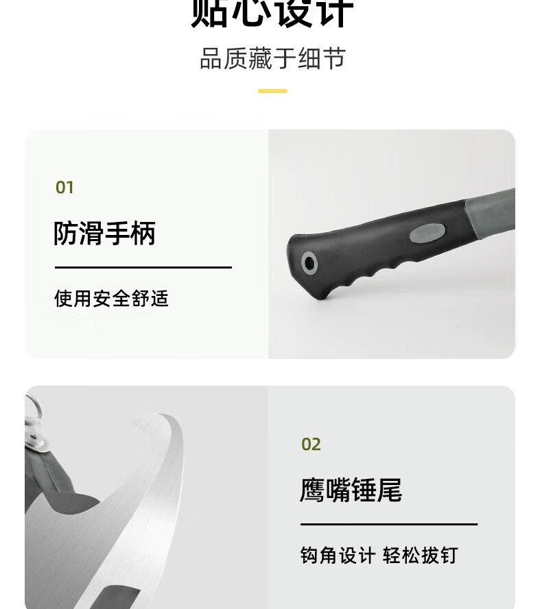这锤子太好了,手感很好,用来砸钉子起钉子最好了,做工很惊喜,握在手里很有分量感,给人信心十足的力量