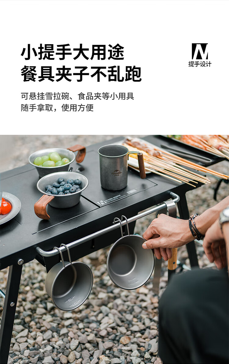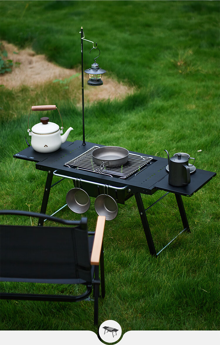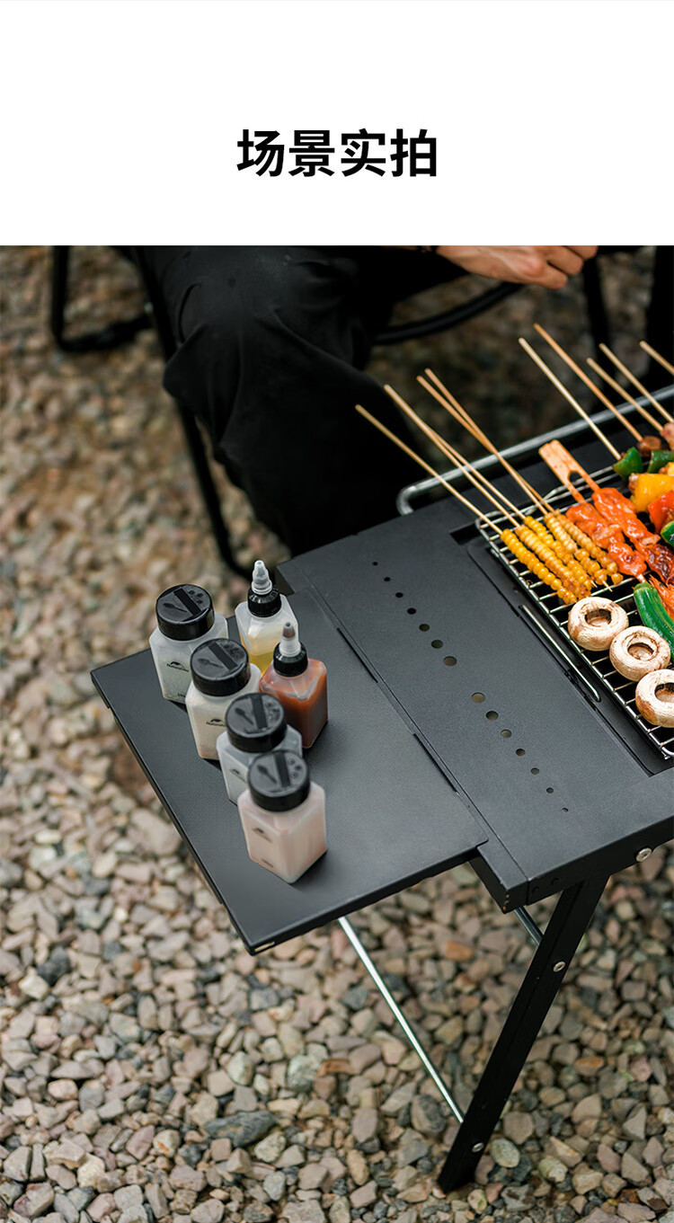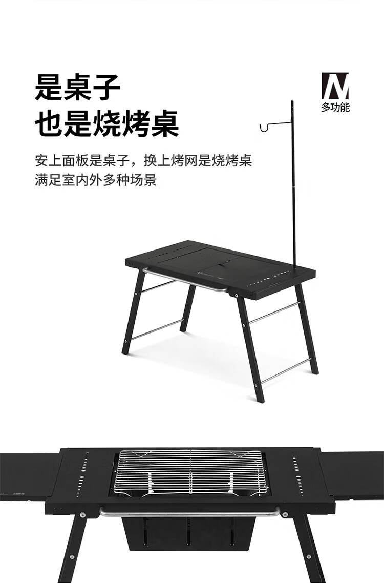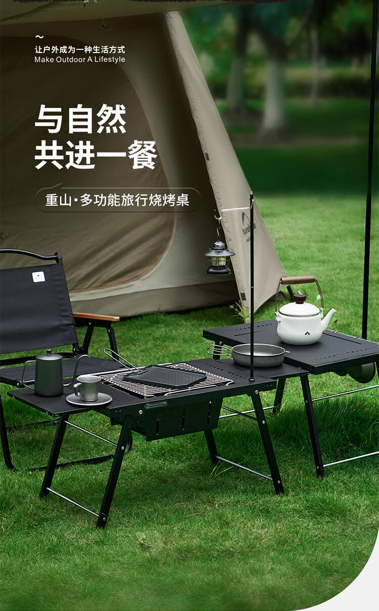 NatureHike挪客重山烧烤桌户外露营折叠桌野餐便携折叠烧烤架家用炭烤炉烤肉 黑色-方管灯杆款