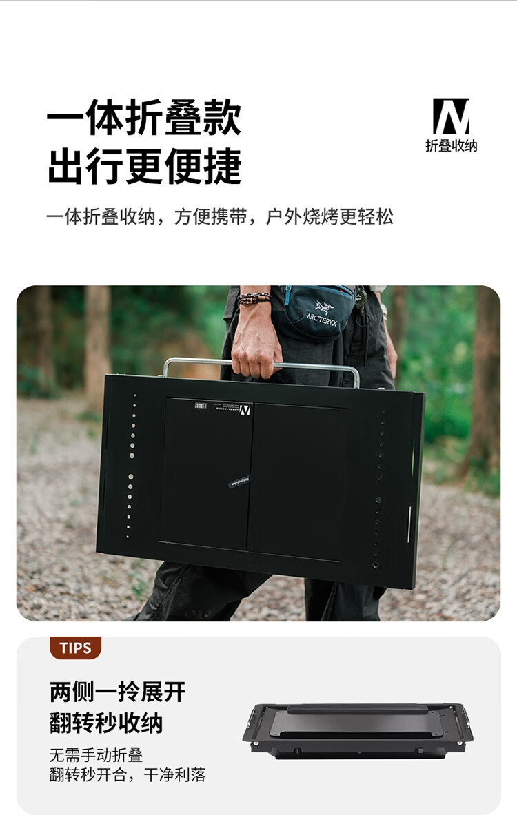 这个烧烤架设计很合理,加上烧烤炉有点微重,质量很好,炉子还可以拿下来单独当桌子用。打开后不太会收纳,客服及时给发了收纳视频,按视频收纳几下搞定。折叠后就薄薄的样子,要是厂家以后能给做个帆布套就更好了,我准备自己做一个收纳套😊非常满意,五星好评!
