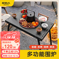 原始人烧烤炉围炉煮茶家用全套户外炭炉室内煮茶桌木炭取暖烤火盆 黑色围炉桌+收纳包+烧烤炭5斤