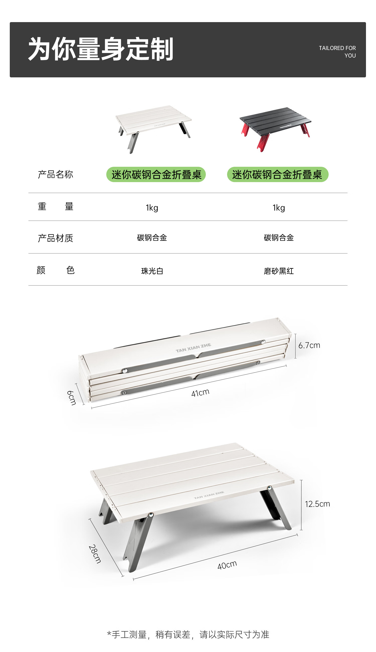探险者(TAN XIAN ZHE)迷你折叠桌小桌子徒步便携式茶桌茶几野餐露营餐桌速开桌轻量装备 【轻量便携 迷你折叠桌】黑红色