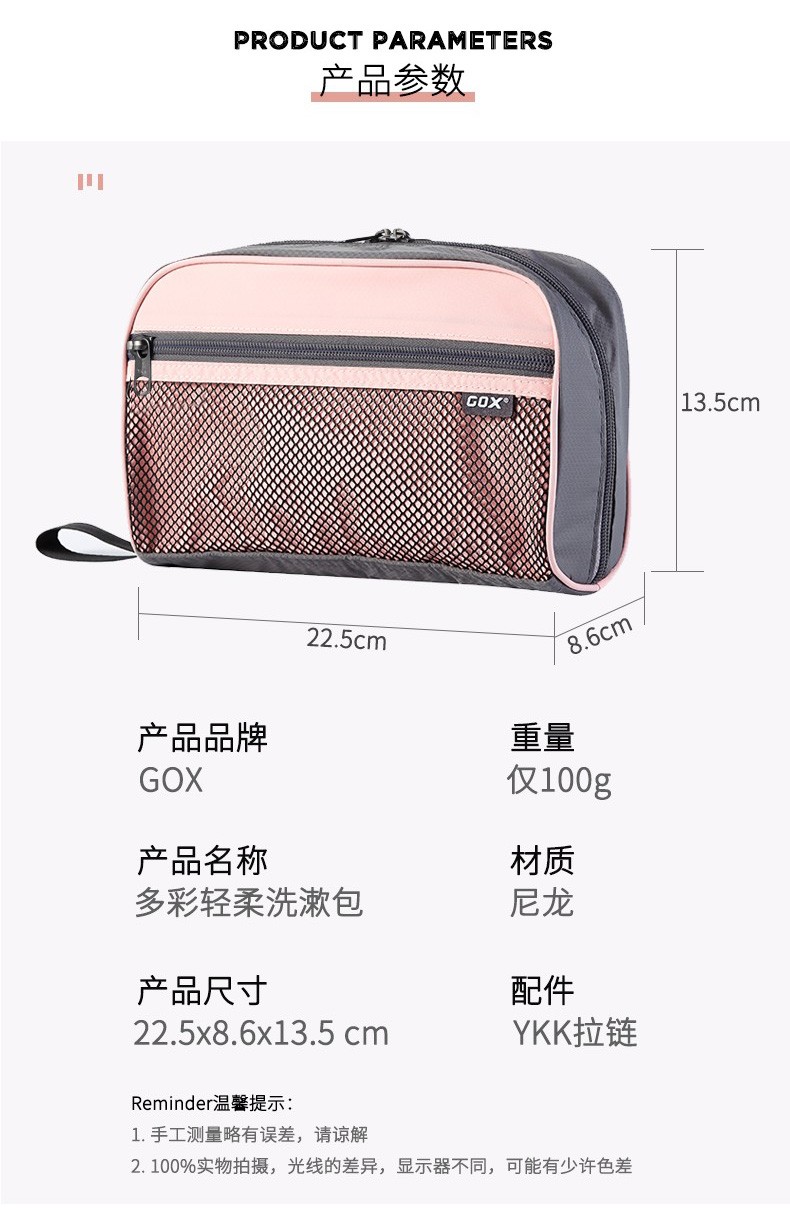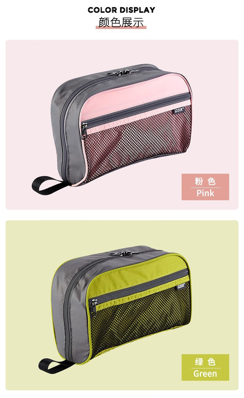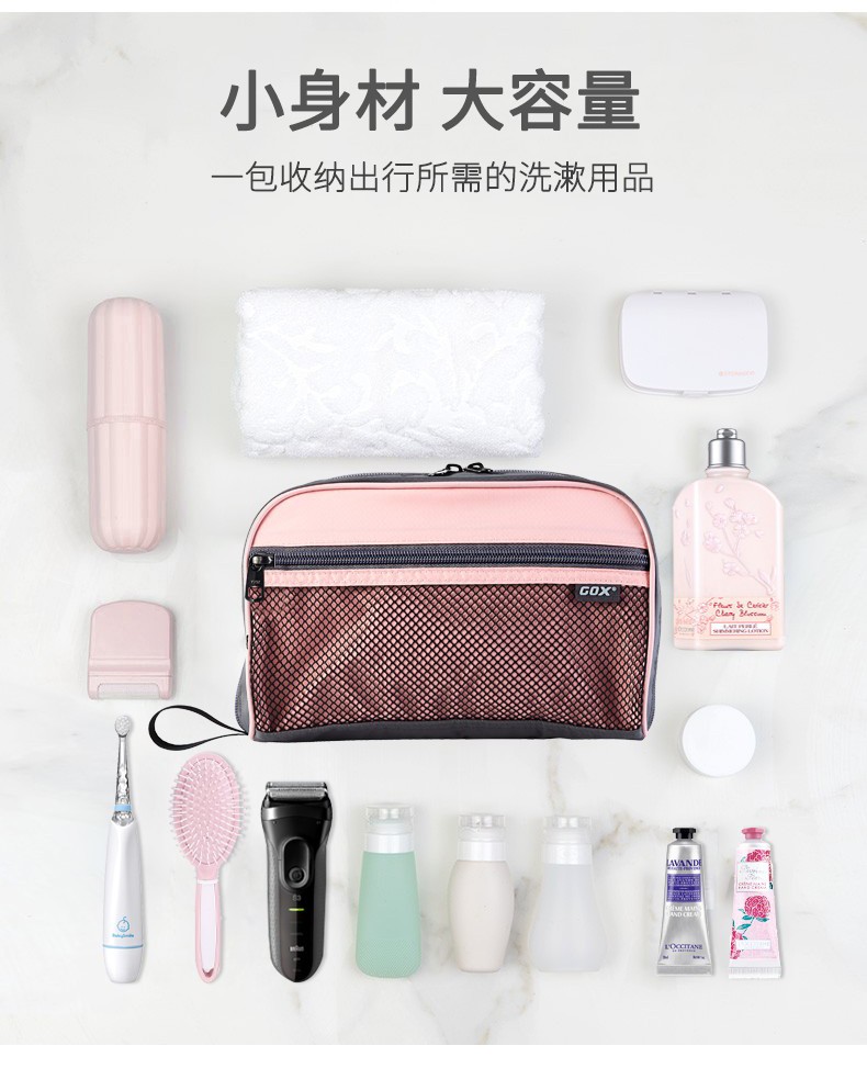 GOX新多彩洗漱包日用品收纳袋防泼水旅行必备化妆包轻便携出差洗漱包 粉色