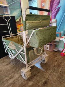 狮奥利兴儿童可坐露营车折叠推车聚拢型营地车户外野餐野营推车粉色带桌板 150L 有刹车 粉色车+合金木纹桌板