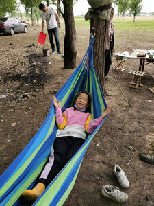 新买的,😌,孩子们很喜欢,每次都要求出去玩吊床。