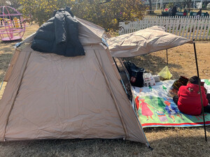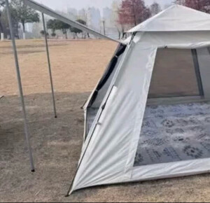 千挑万选的一款帐篷,很满意!二门二窗的设计,布料厚实,网眼细密,通风又防风。2m*2m*1.35m的空间,二宝家庭也够了。赠送的地垫质量也不错👍门还可以撑起来作天幕,空间就更大了。