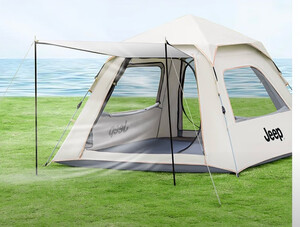 JEEP天幕帐篷户外露营帐篷全自动速开便捷天幕二合一防晒家庭野营装备 3-5人加厚防晒帐篷【琥珀咖】