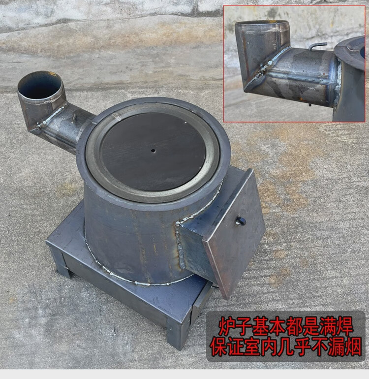 梵靓(FLDJL)柴火灶烧木柴家用农村无烟取暖炉移动室内新款大铁锅台加厚乡下烤 //.30新黑圆通+35cm烟管配件