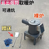 家用烧煤节能取暖炉柴煤两用农村室内取暖炉子简易柴炉 直脖款可烧炕送火钩+火铲+手套