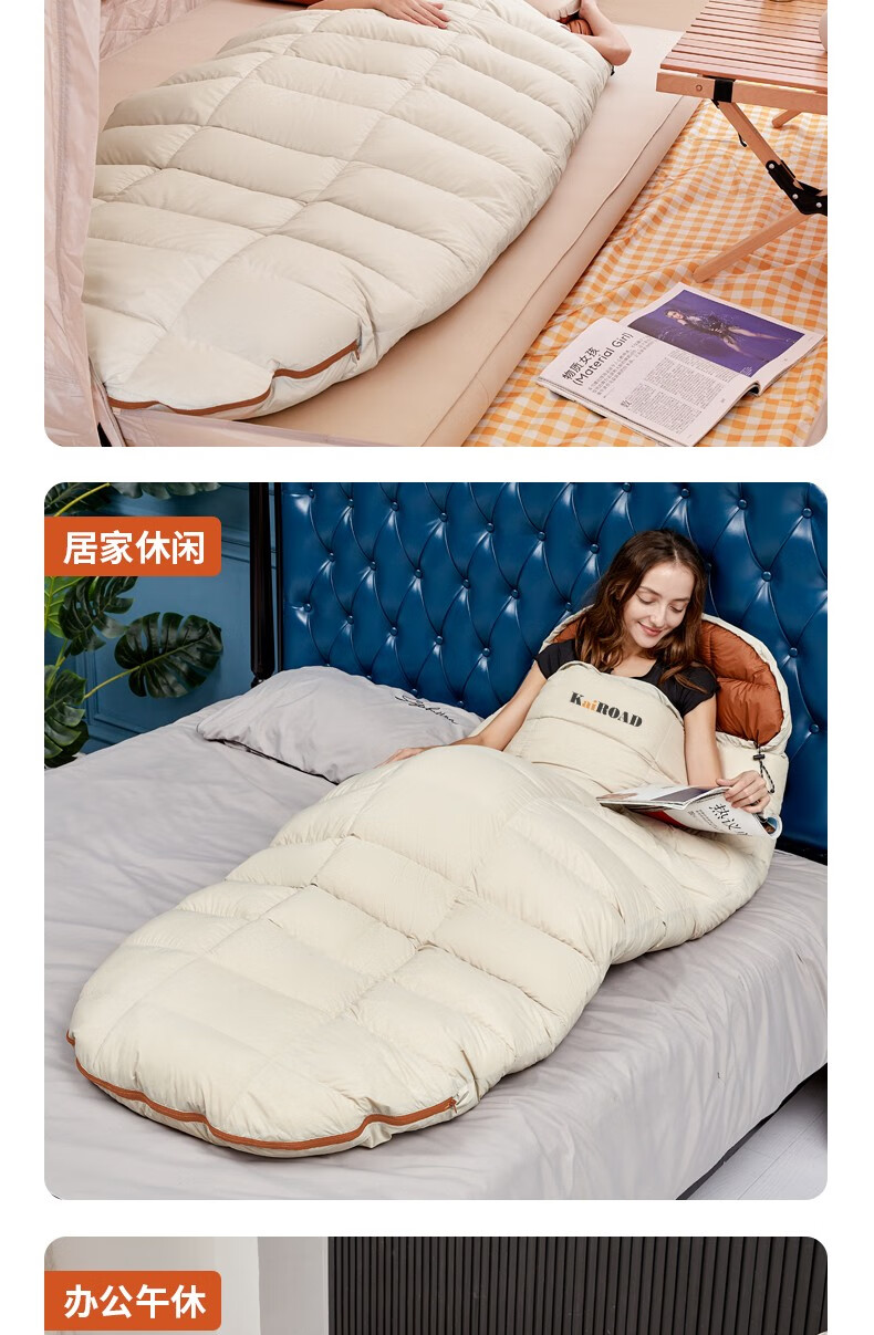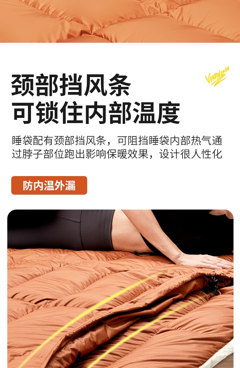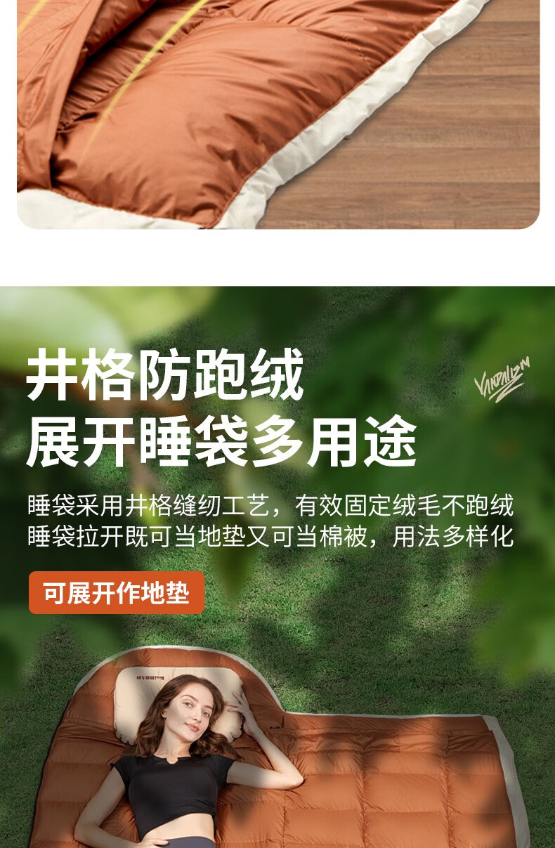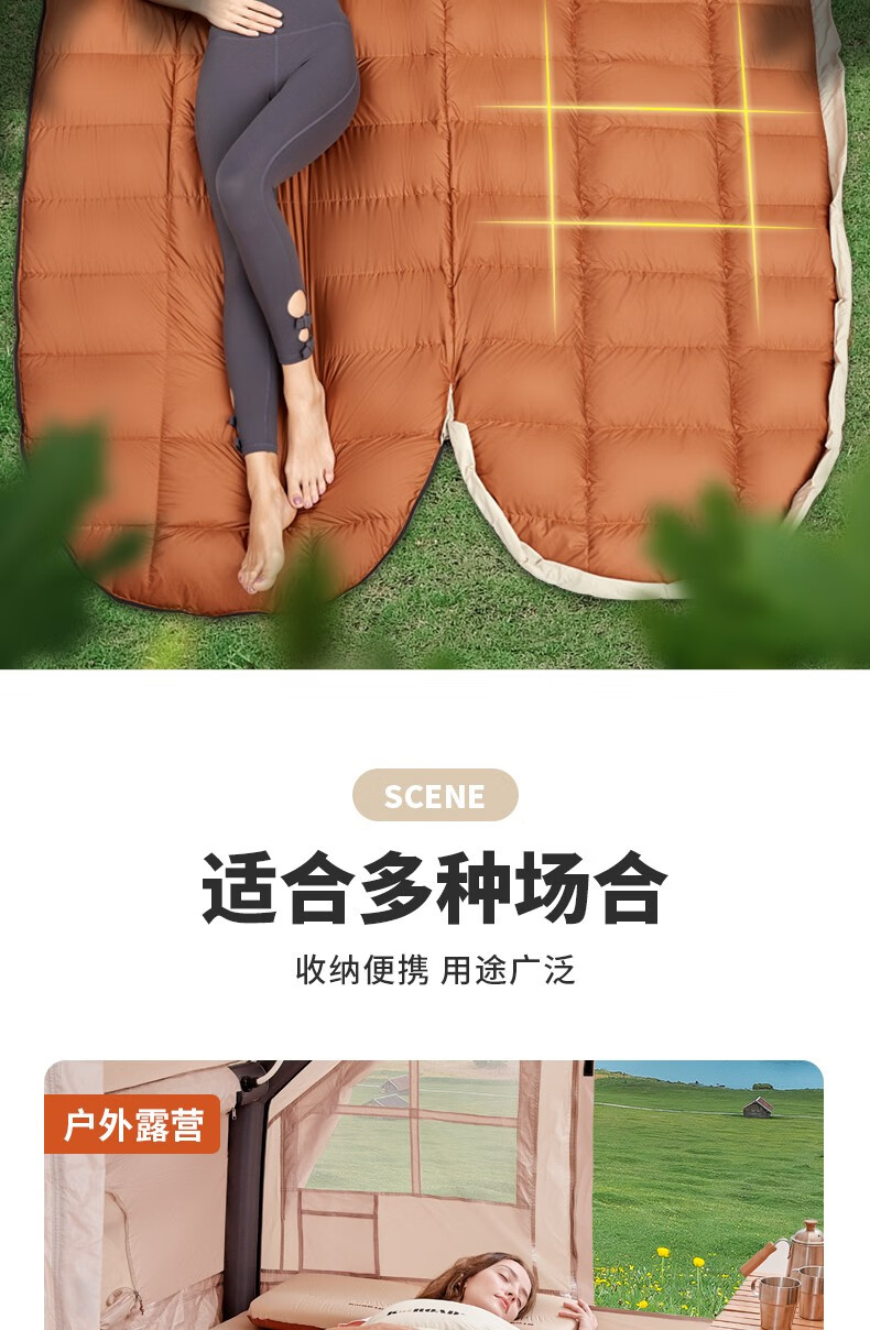 这个羽绒睡袋超五星好评,没有想到这个价格能买到羽绒睡袋收纳比较轻松,大小也适合展开以后既可以当褥子,也可以当被子还可以当睡袋使用,面料也比较亲肤,是一个非常好的户外露营产品