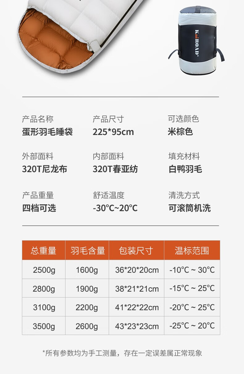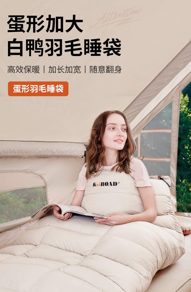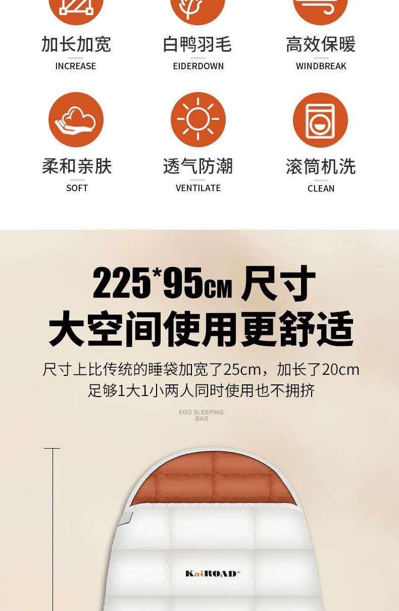 凯路德(KAIROAD) 羽绒睡袋成人加厚保暖户外冬季露营加宽单人可拼接室内隔脏羽毛 95CM加宽-蛋形睡袋2500g+内胆