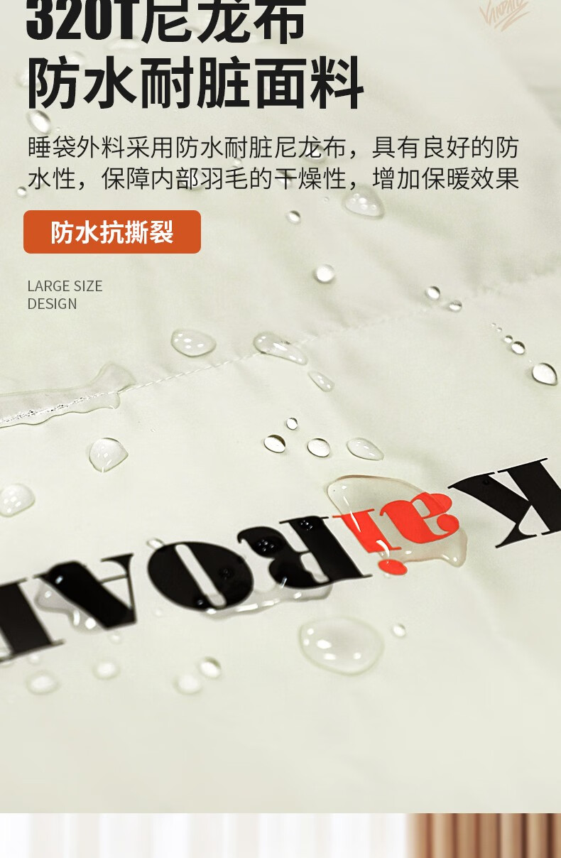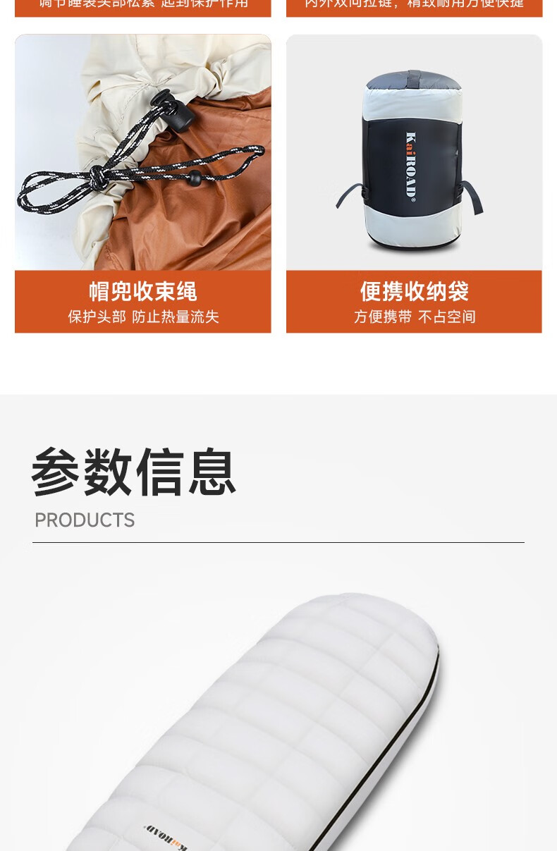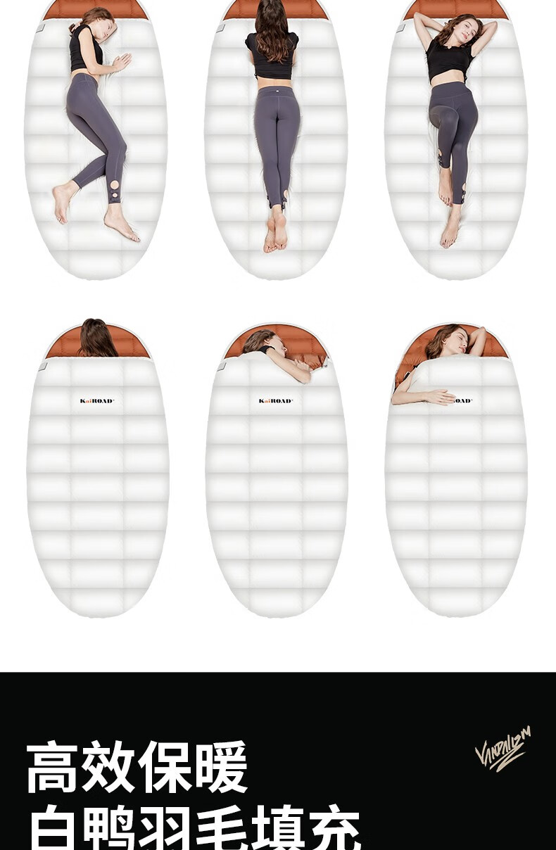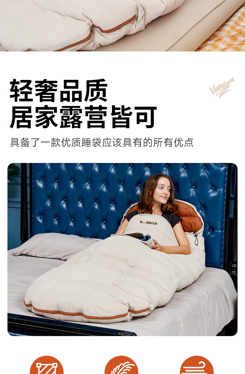 凯路德(KAIROAD) 羽绒睡袋成人加厚保暖户外冬季露营加宽单人可拼接室内隔脏羽毛 95CM加宽-蛋形睡袋2500g+内胆