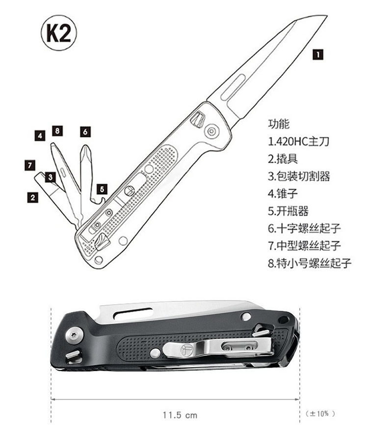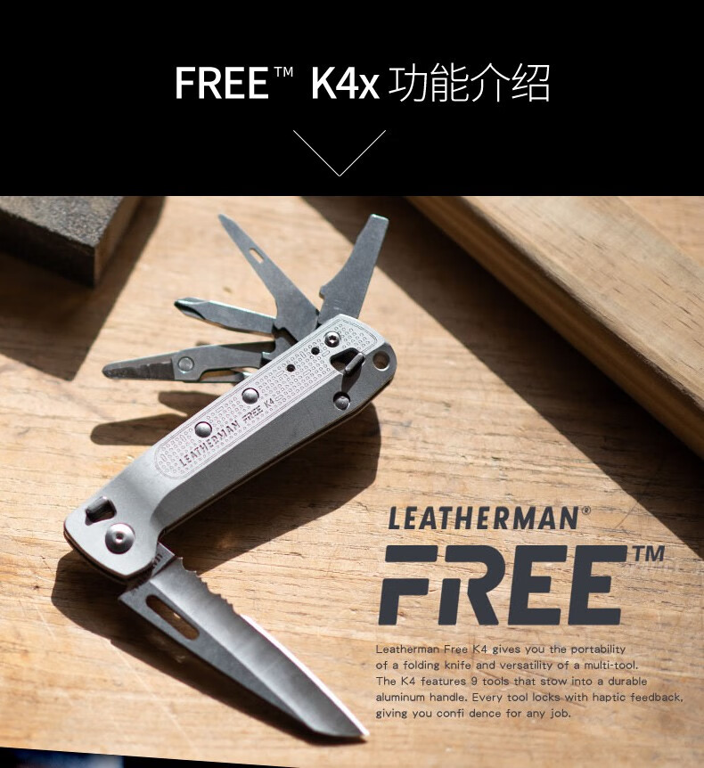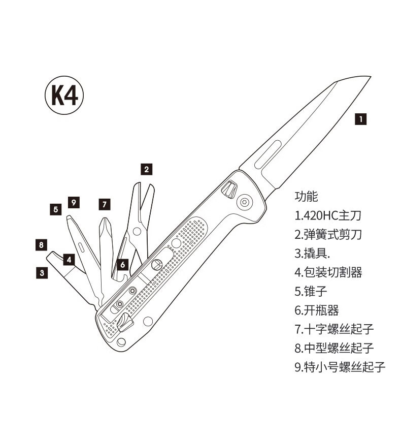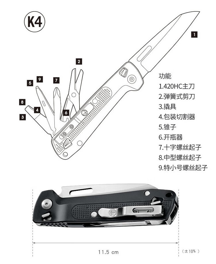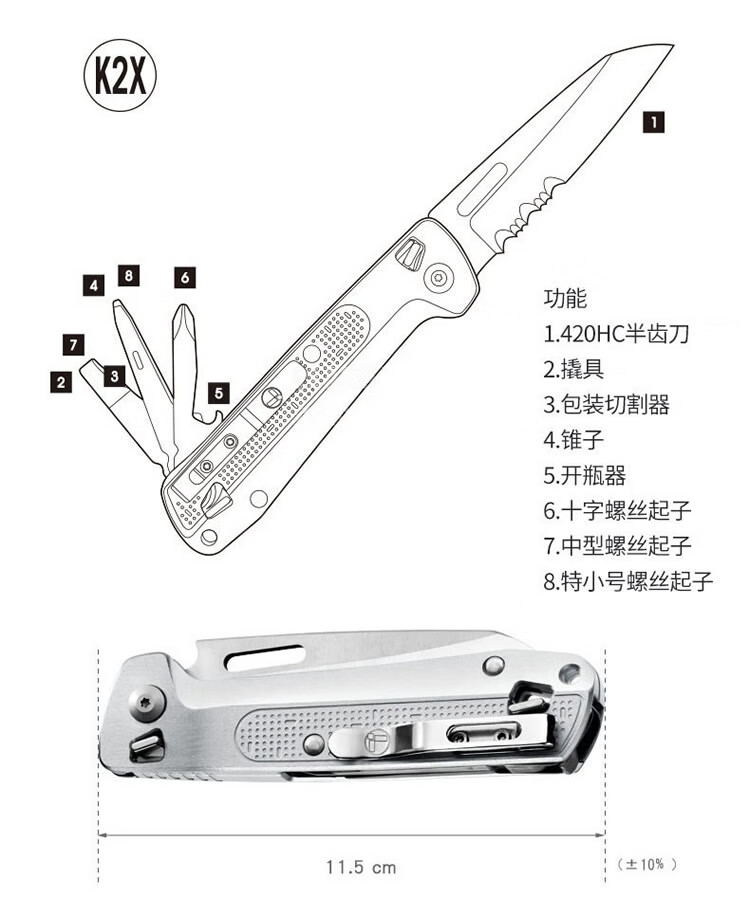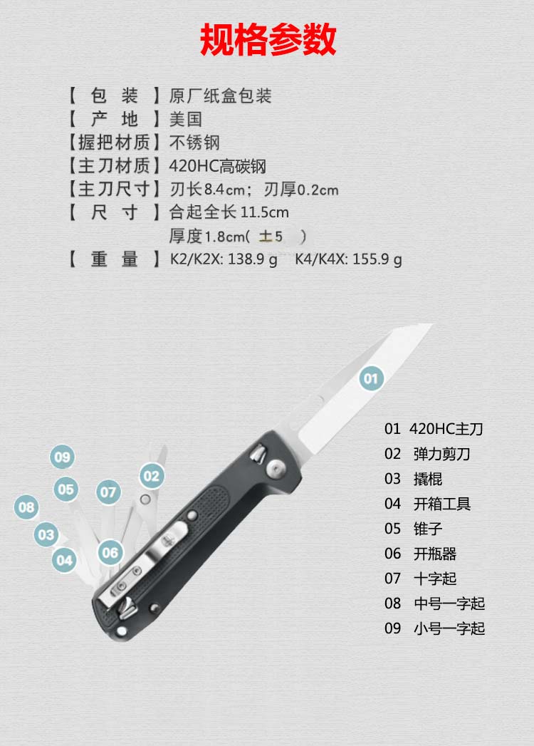 莱特曼 FREE K系列户外军迷多功能战术工具 户外便携组合EDC工刀具 K4x(银色半齿刃带剪刀)