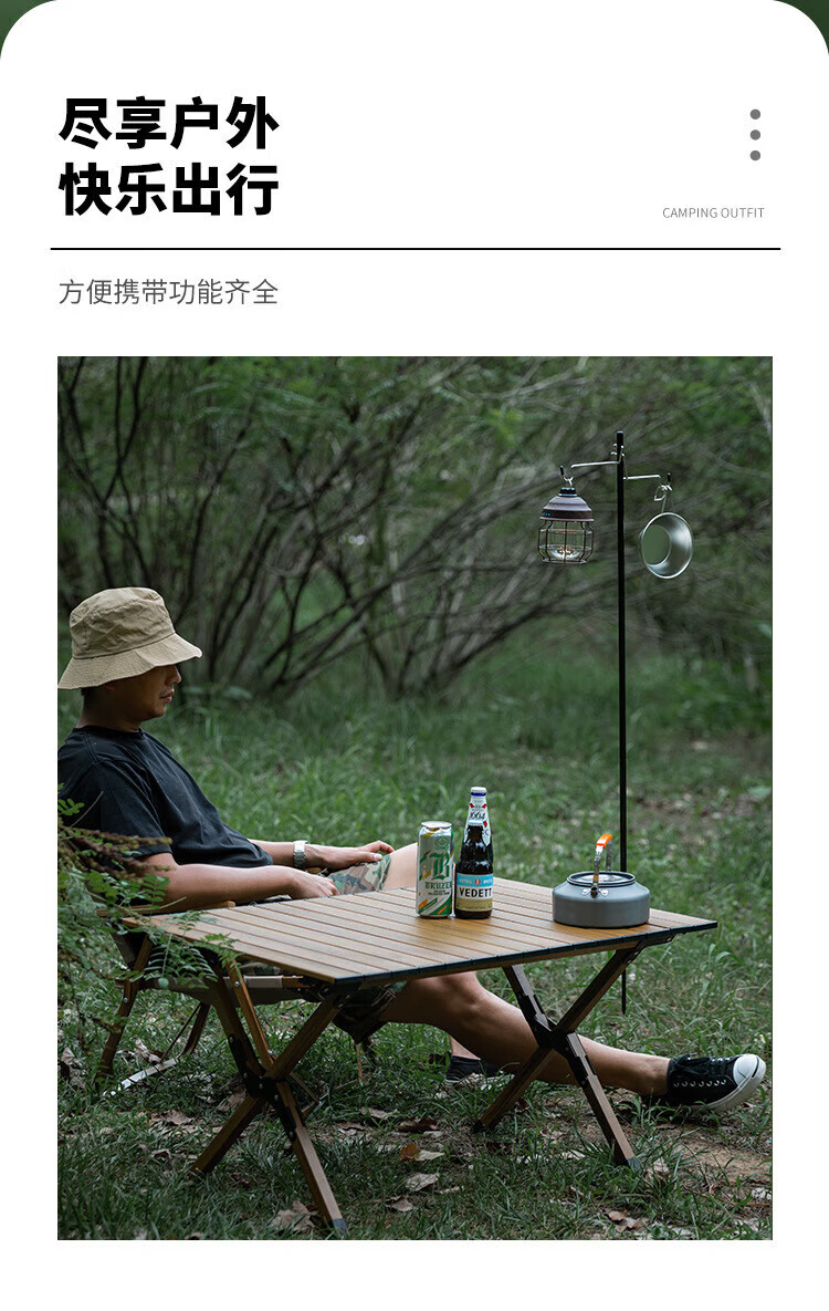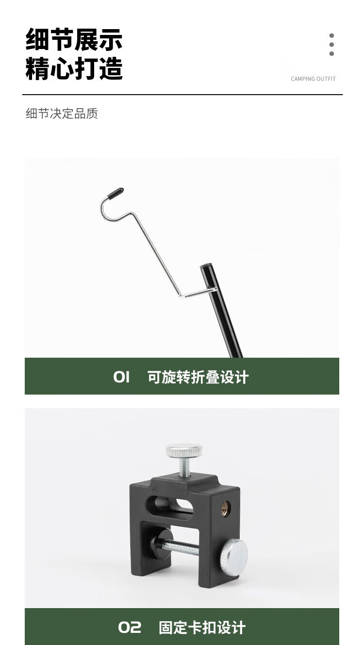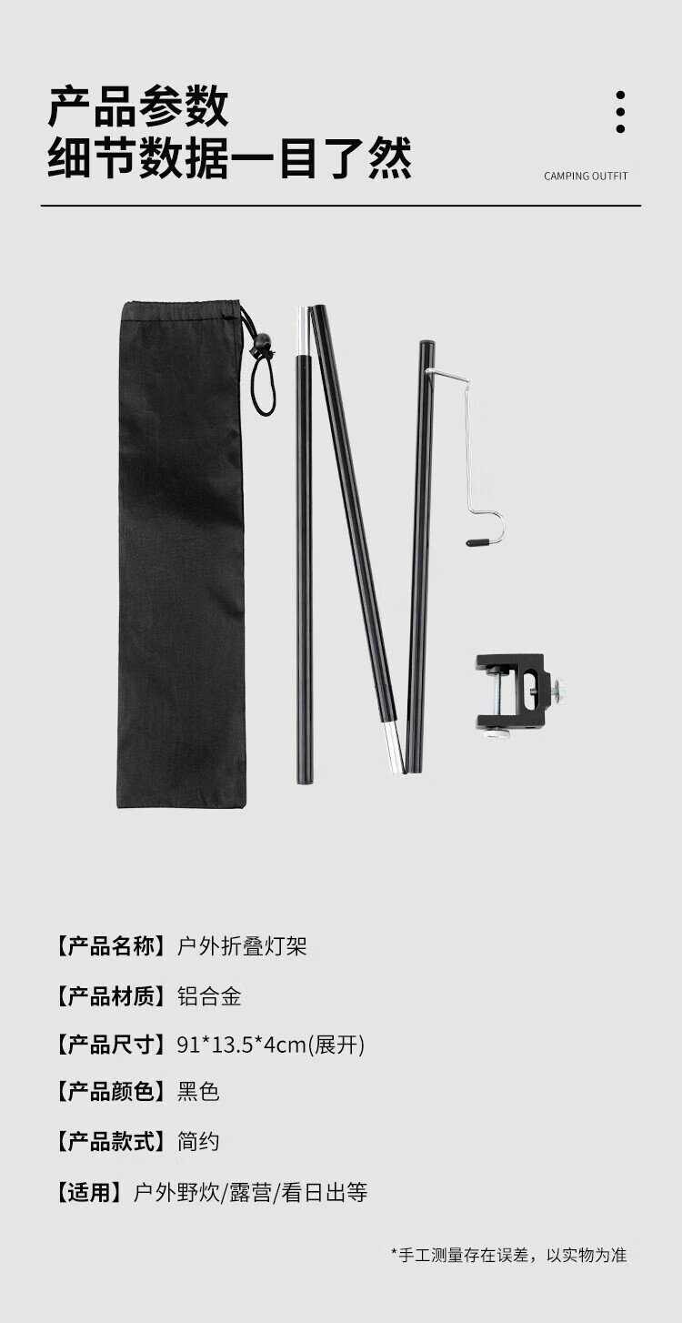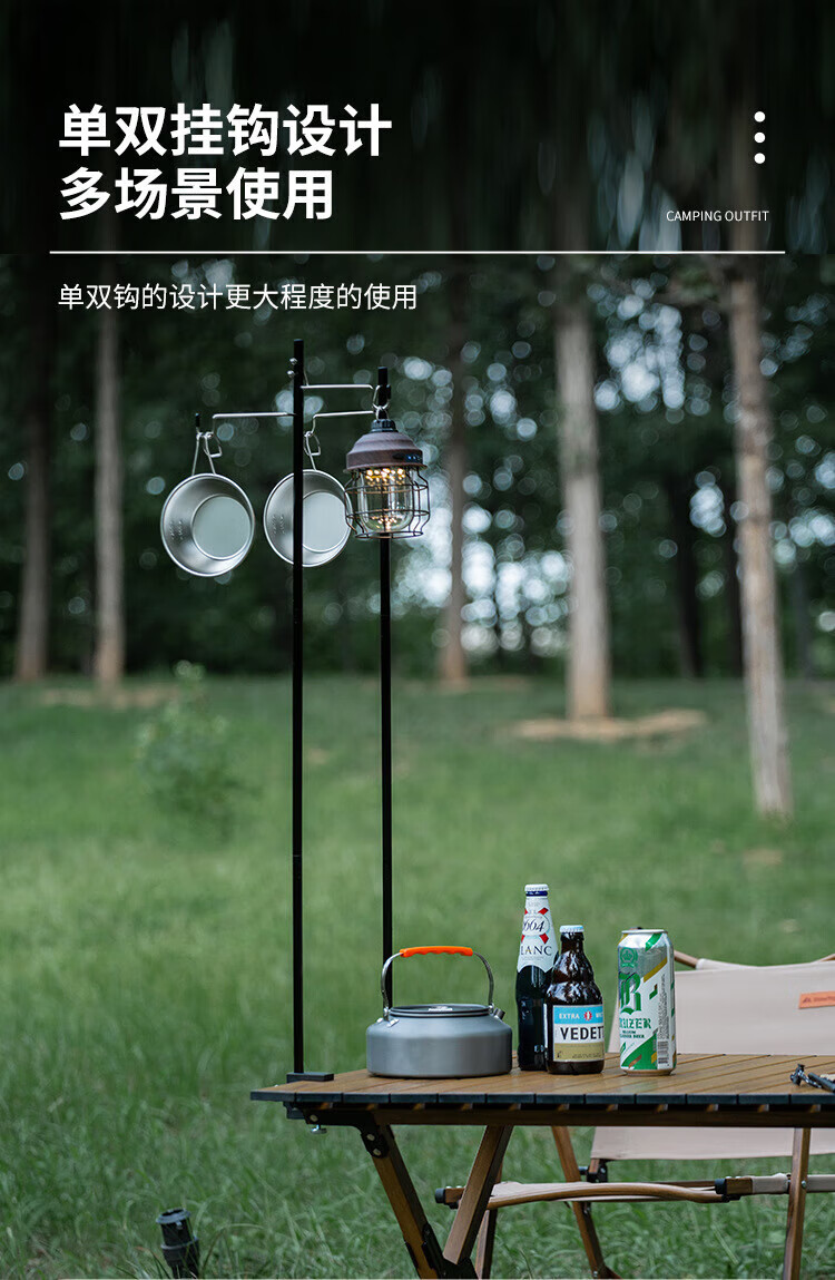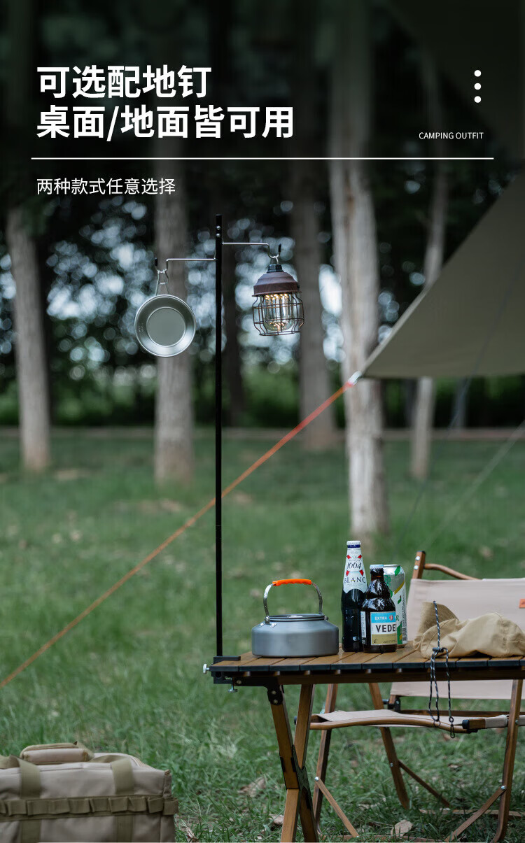 oein户外露营灯支架灯杆营地折叠便携式桌面照明挂灯勾挂架露营装备 黑色【露营灯架】双钩带地钉