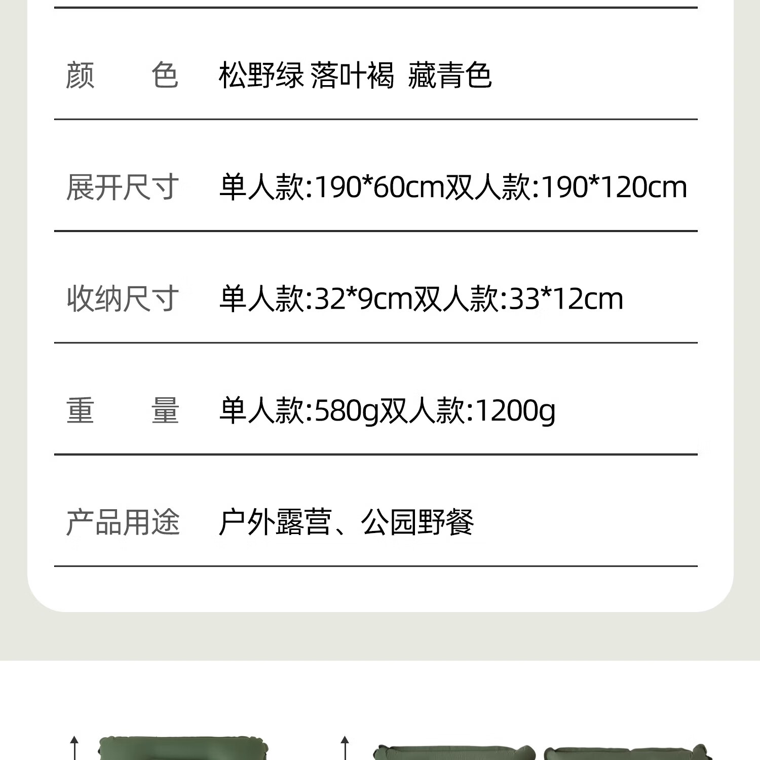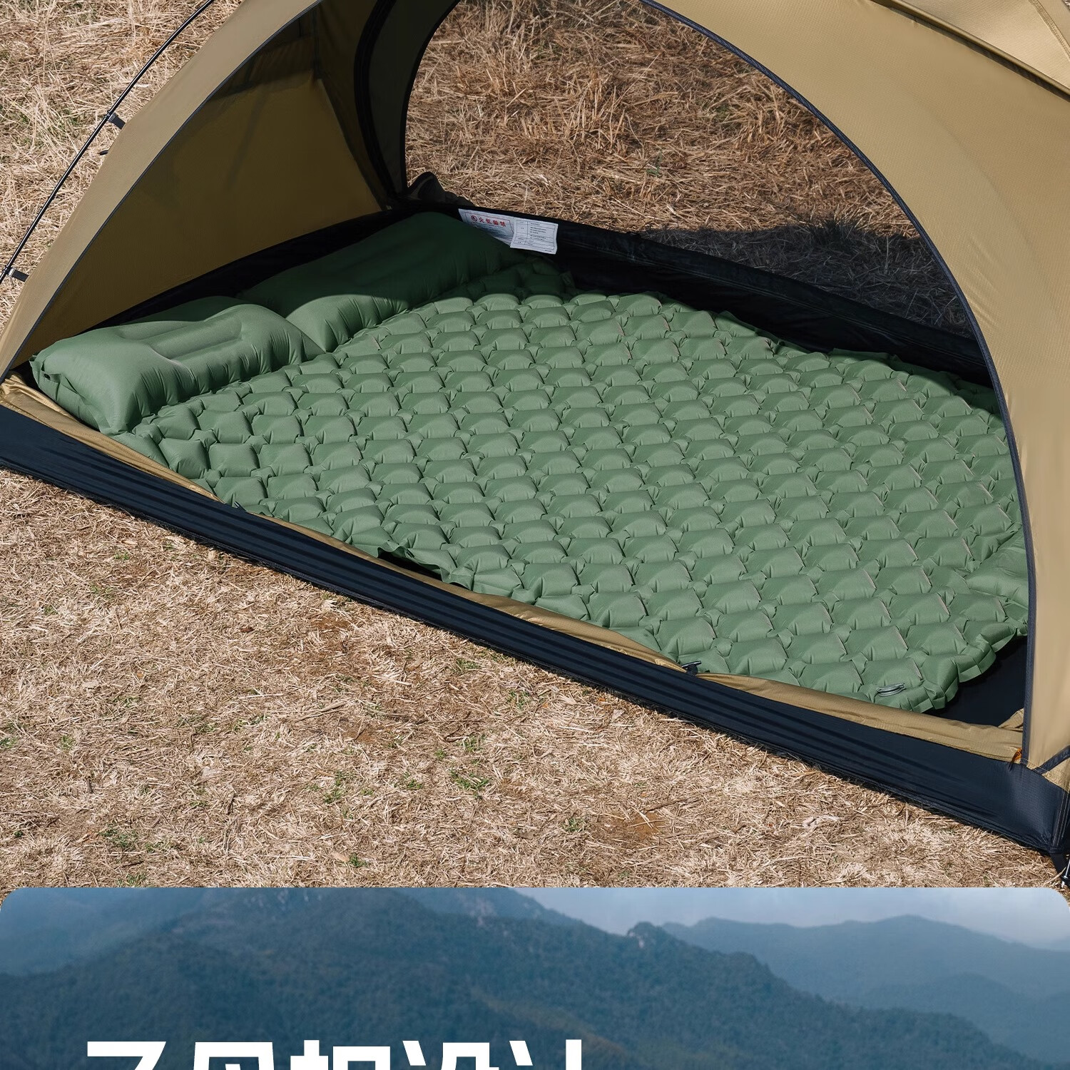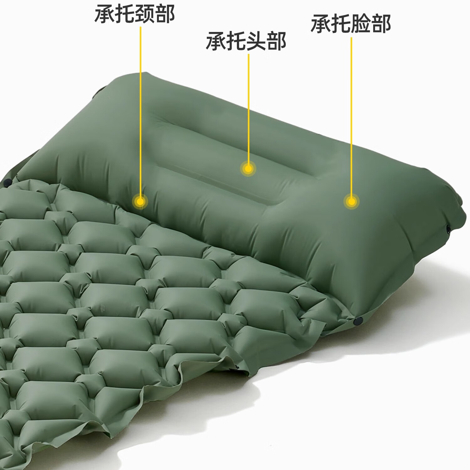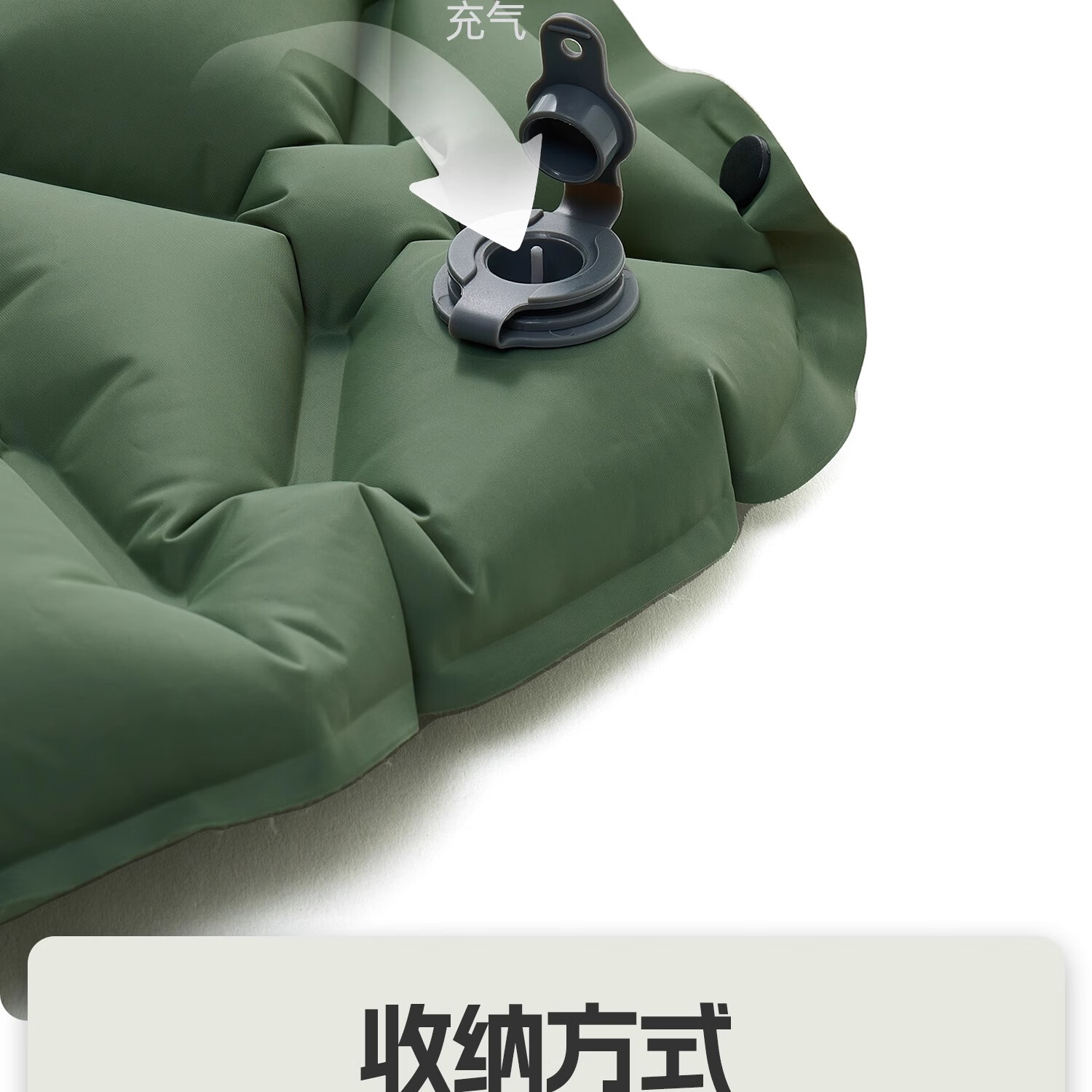 自带手按打气囊和一体式枕头,收纳小巧轻便,方便携带,面料质感不错,美中不足气垫里面没有加泡沫层做缓冲,稍微单薄了一些,降低了整体的舒适性。