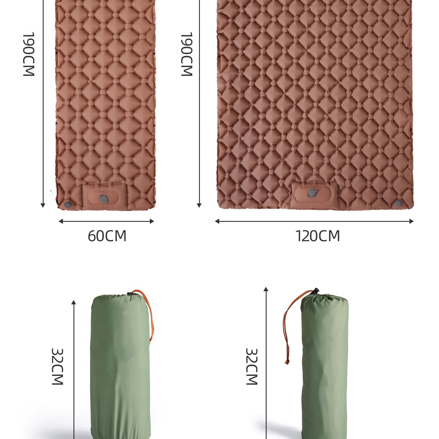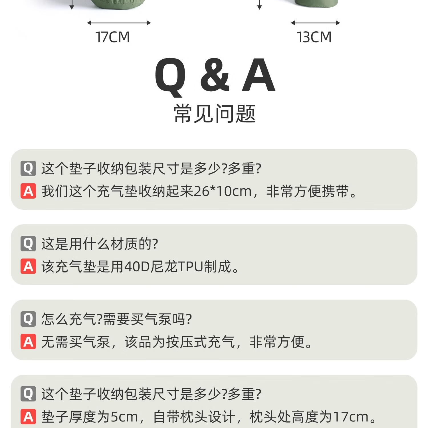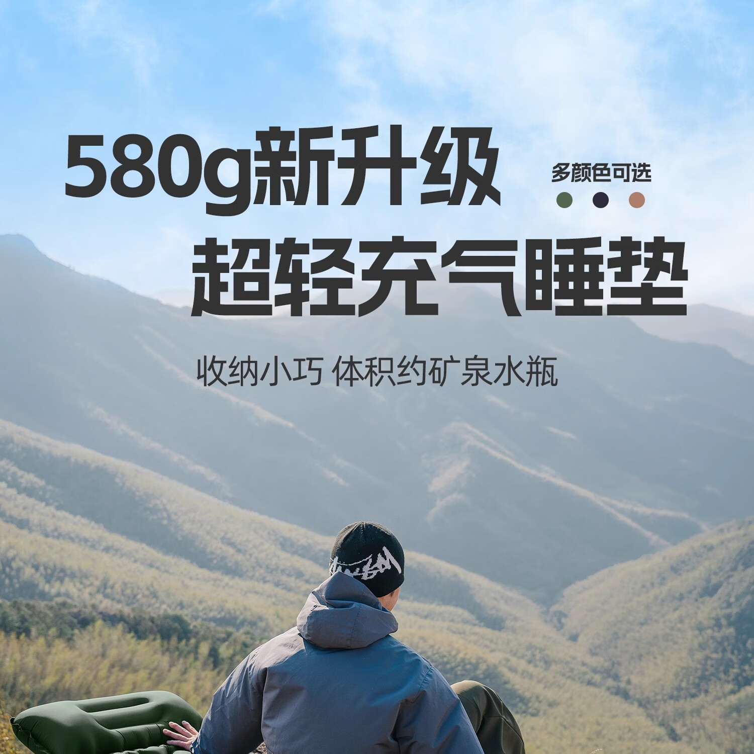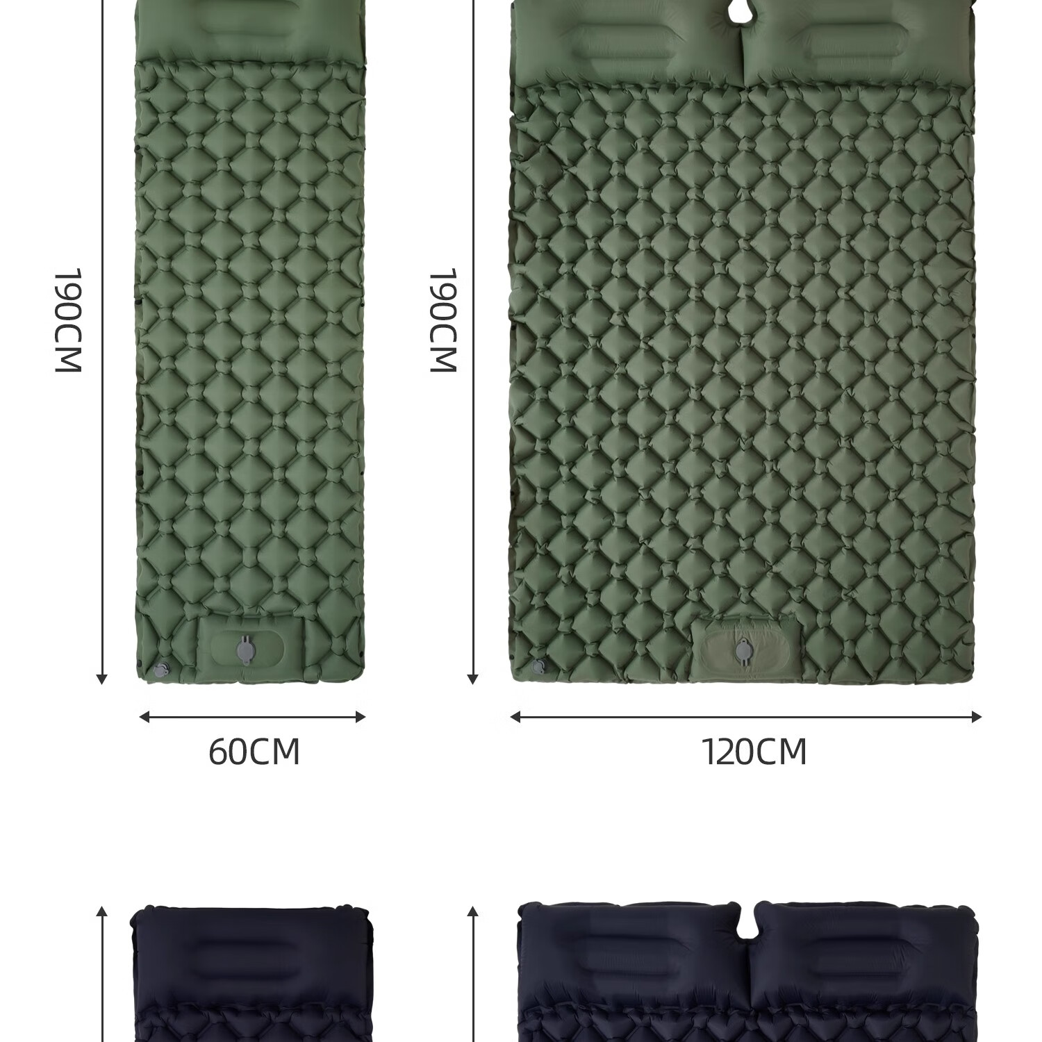 自带手按打气囊和一体式枕头,收纳小巧轻便,方便携带,面料质感不错,美中不足气垫里面没有加泡沫层做缓冲,稍微单薄了一些,降低了整体的舒适性。