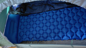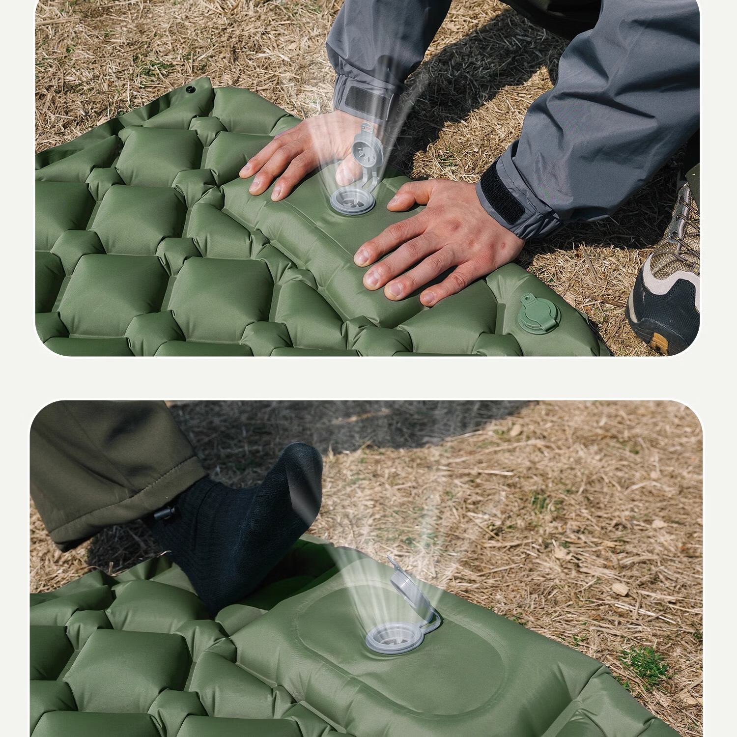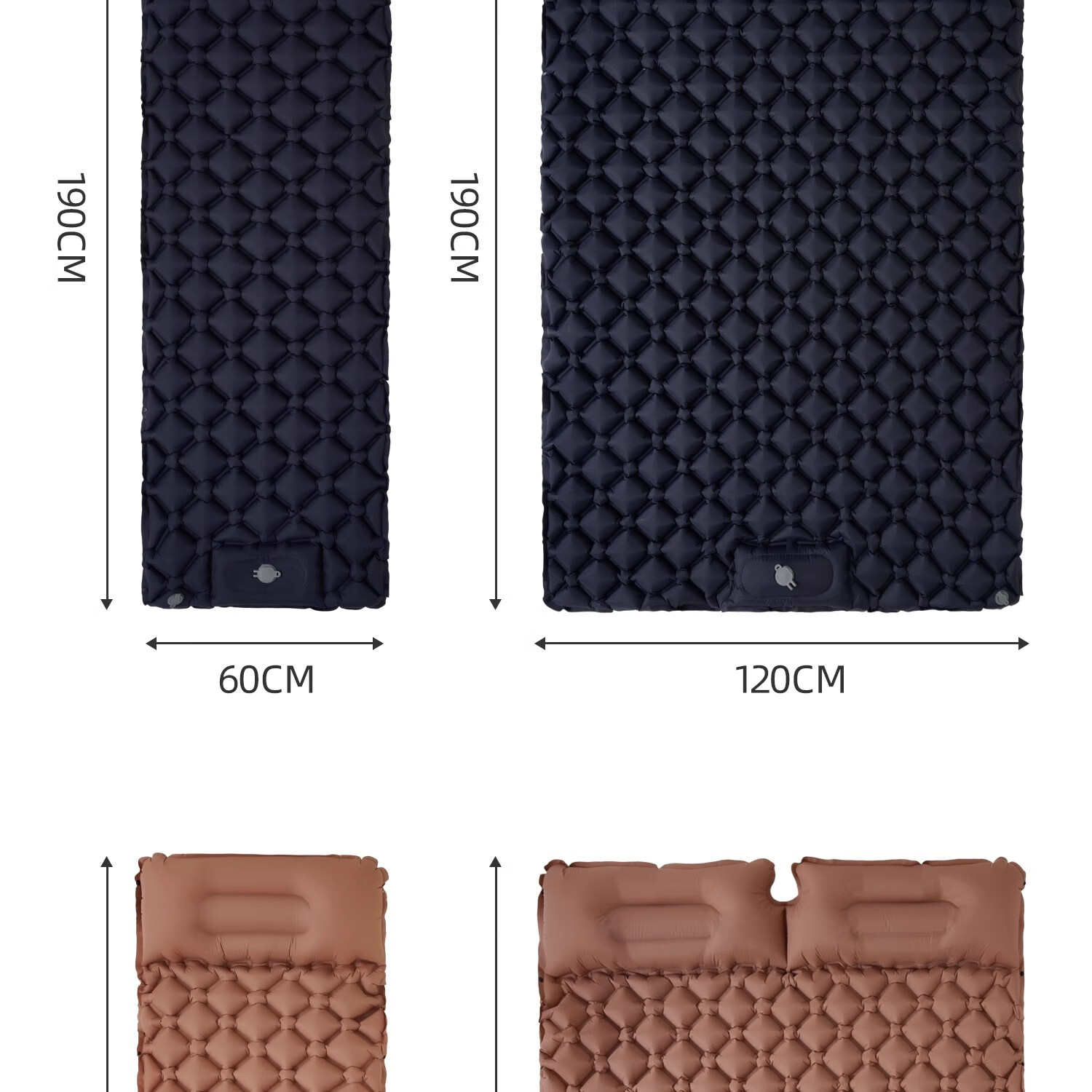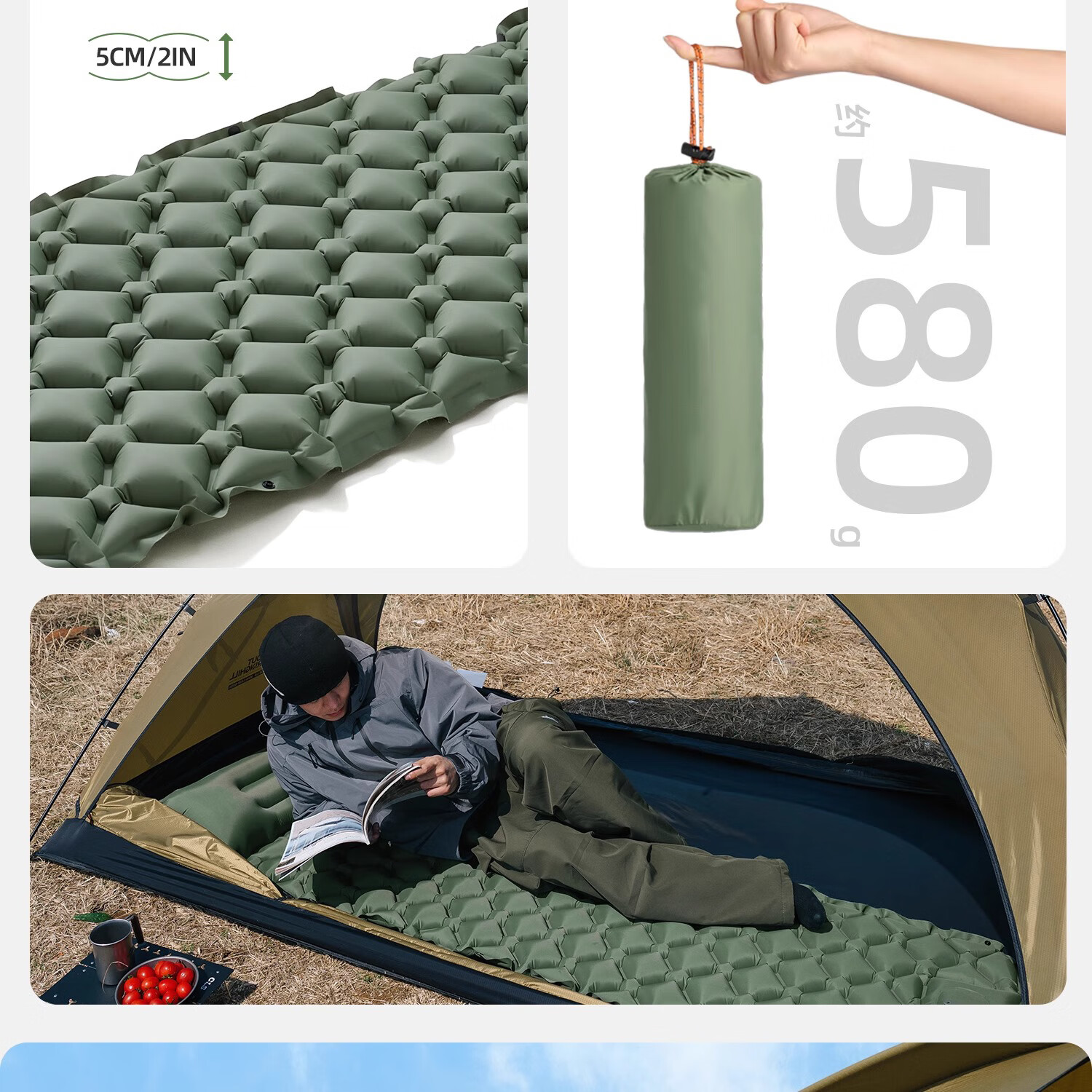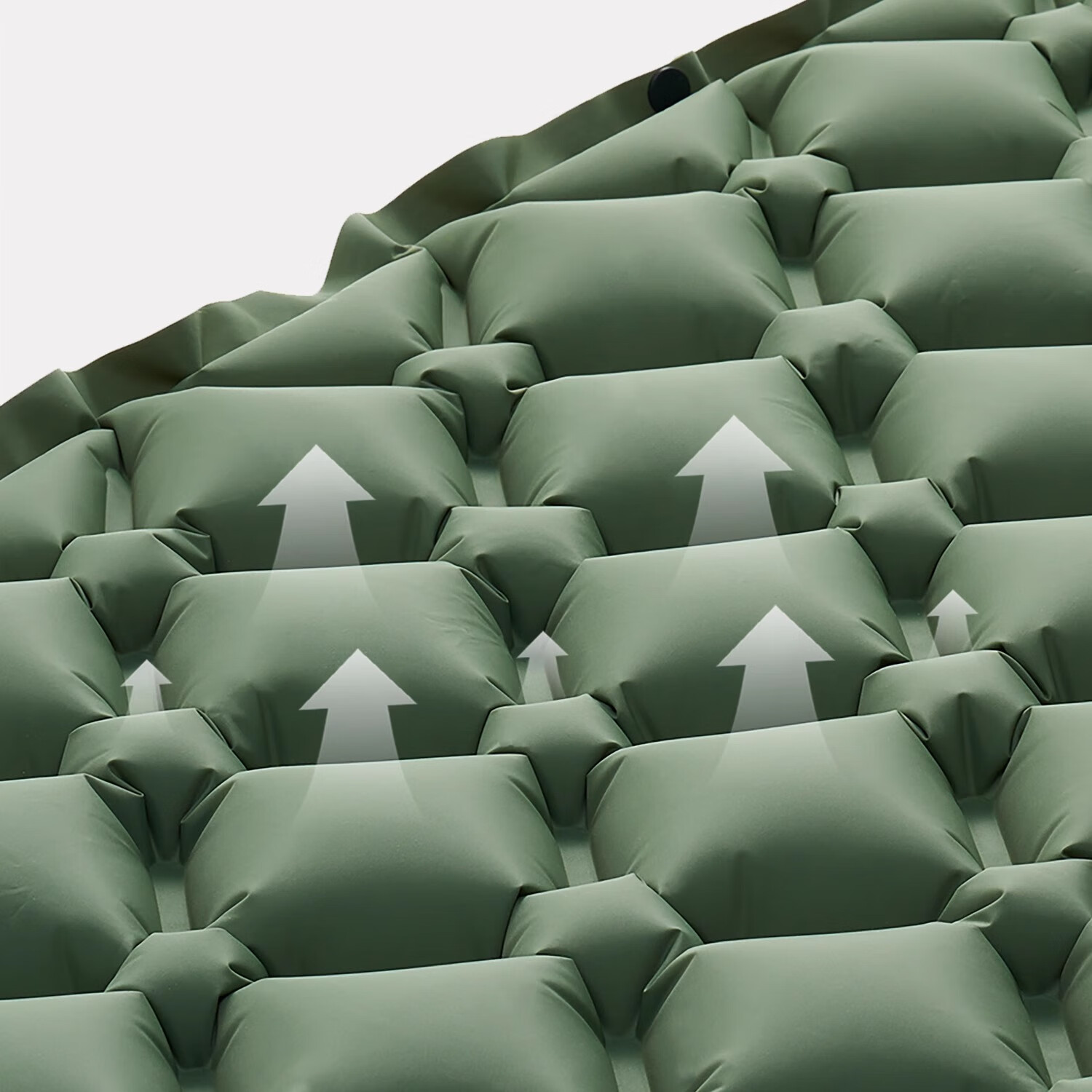 自带手按打气囊和一体式枕头,收纳小巧轻便,方便携带,面料质感不错,美中不足气垫里面没有加泡沫层做缓冲,稍微单薄了一些,降低了整体的舒适性。