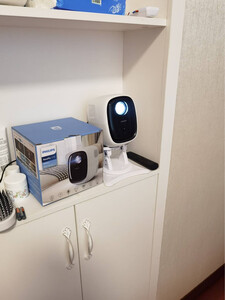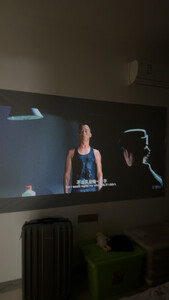 机器小小的 放在家里角落位置刚好 买来就用了直接投射到墙面的 画质还是很好的 每次开机自动对焦 可自动也可手动 操作非常方便 音质也可以 非常不错