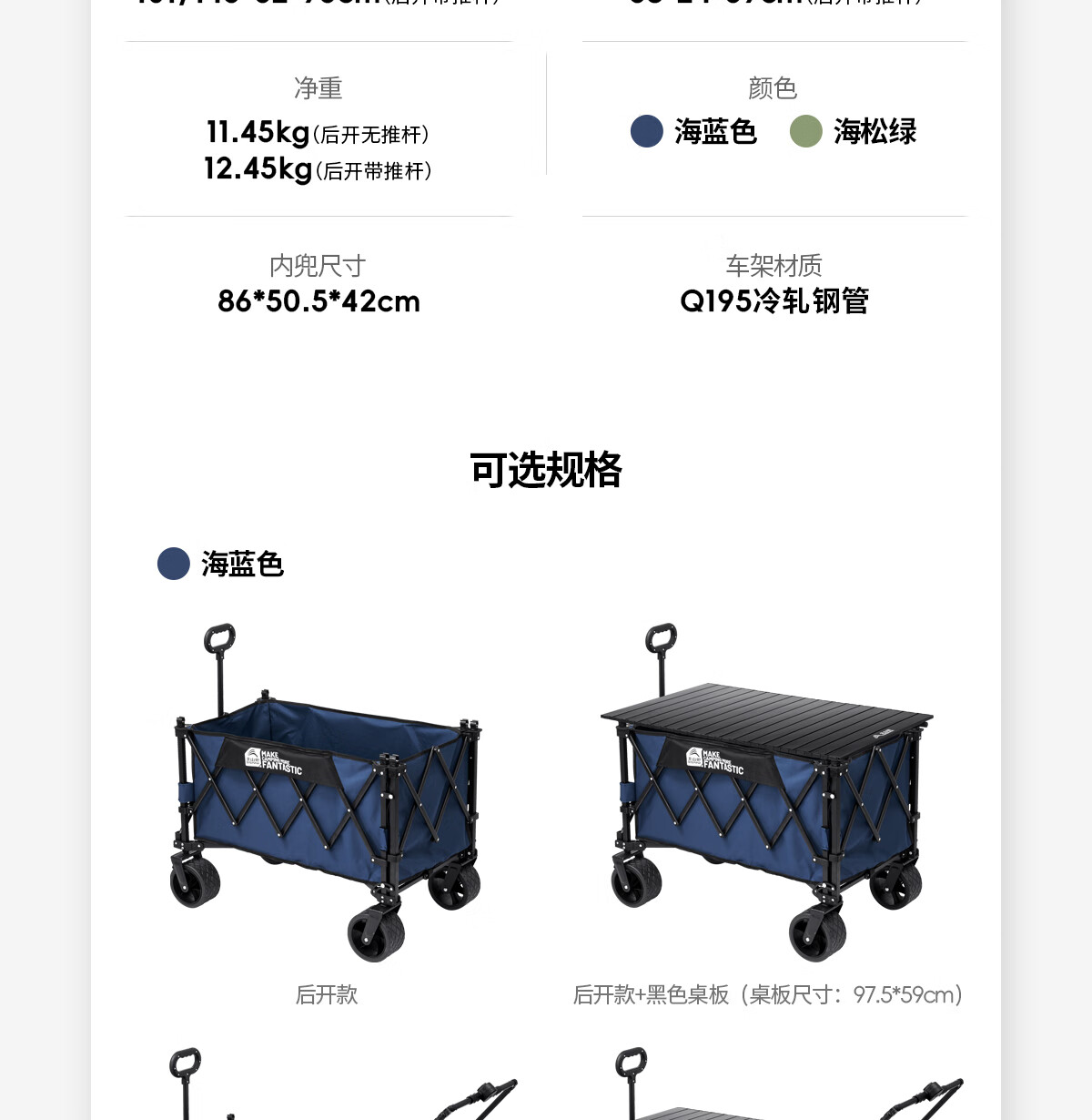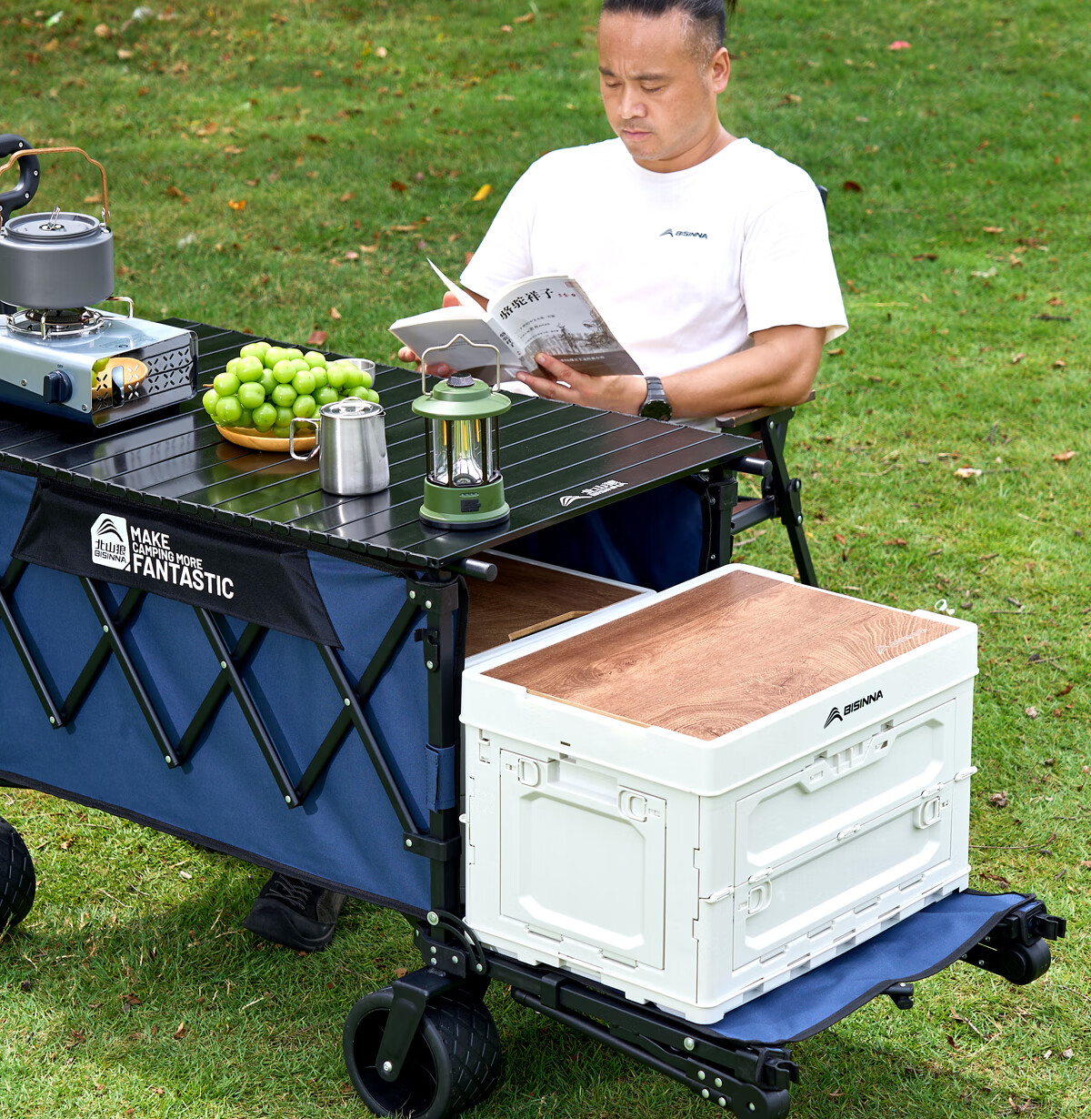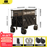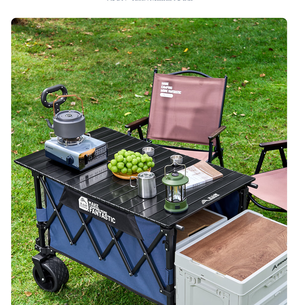 北山狼 聚拢型露营车大号特大号儿童可睡觉户外推车旅行快递野餐营地车 黑色 500L 有刹车 +黑色铁桌板(折叠款)
