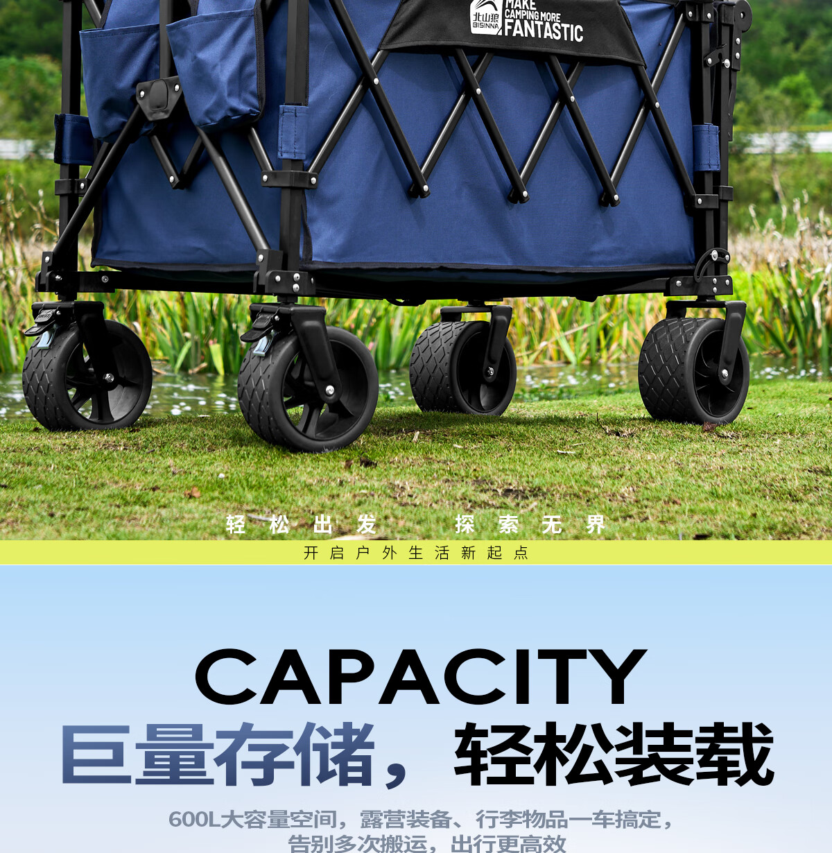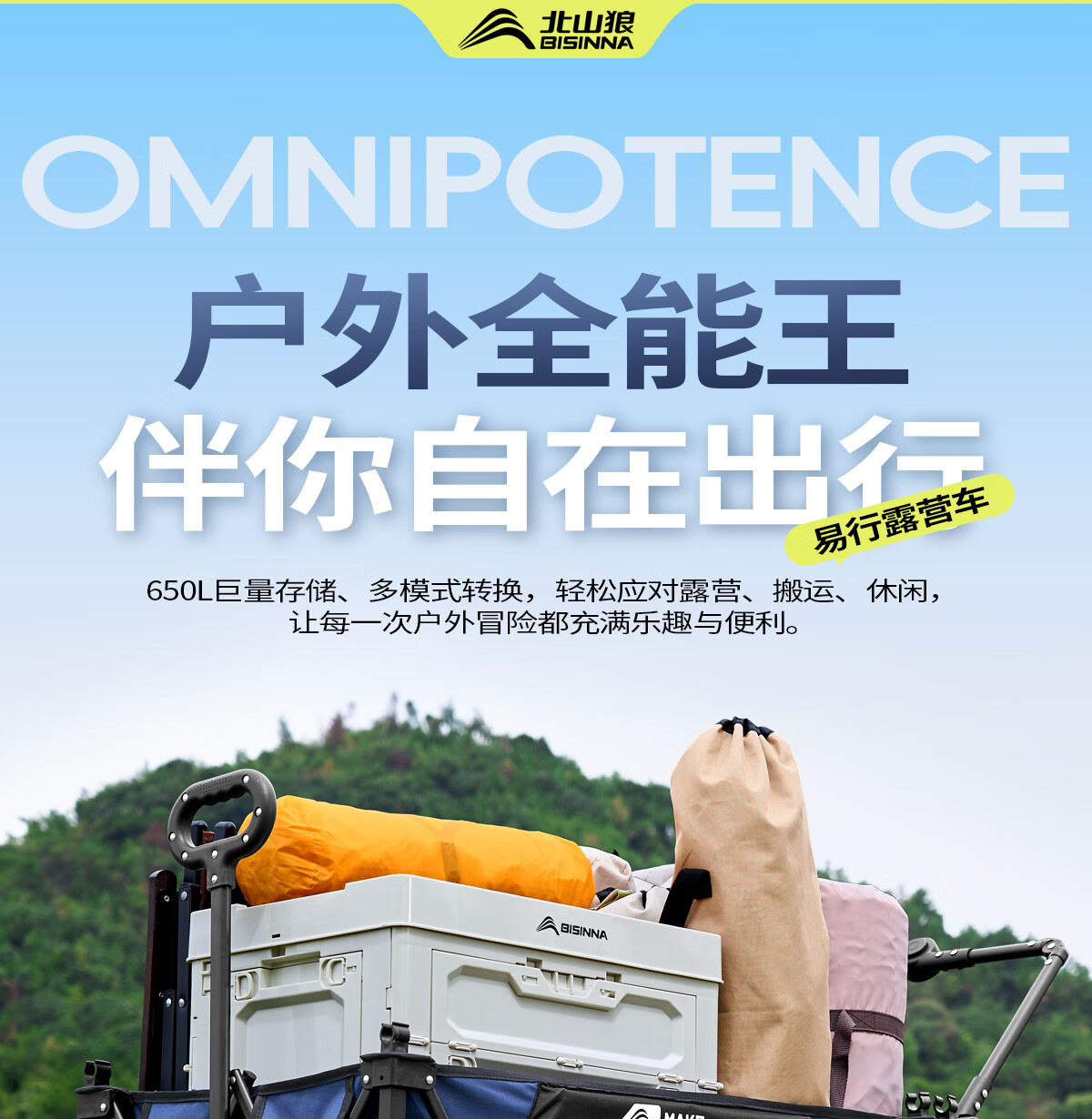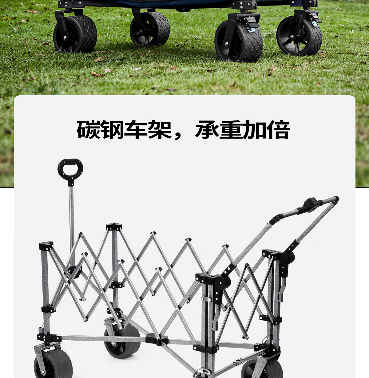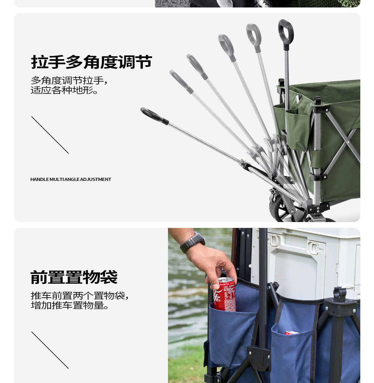 北山狼户外露营车聚拢大号营地车旅行野餐野营可推儿童遛娃手推车 海松绿【无推杆款】 650L 有刹车
