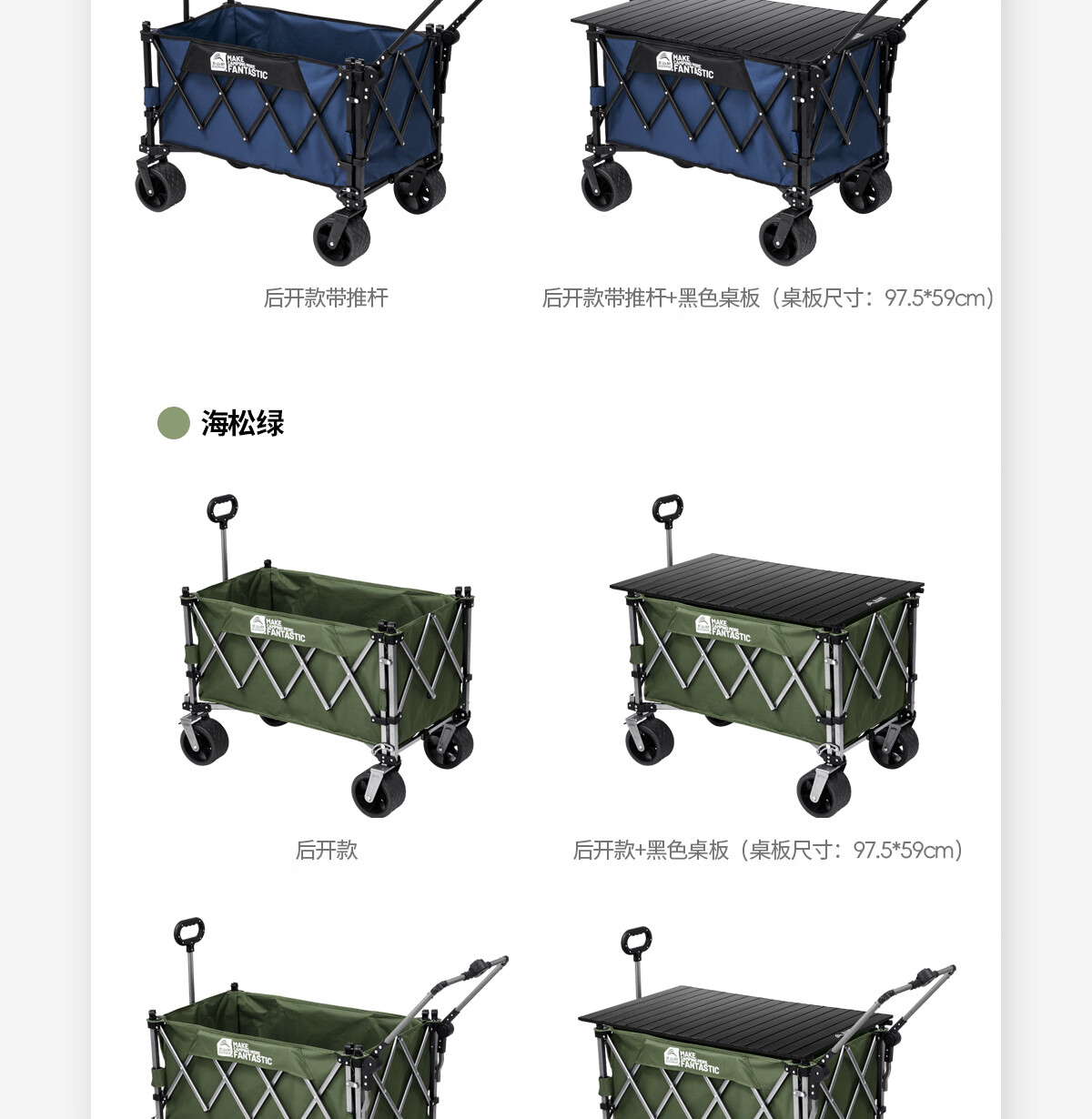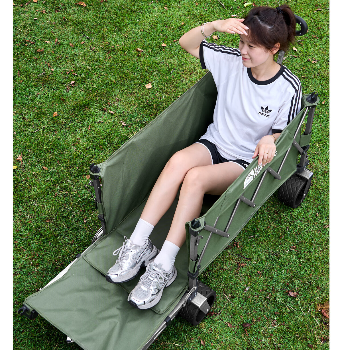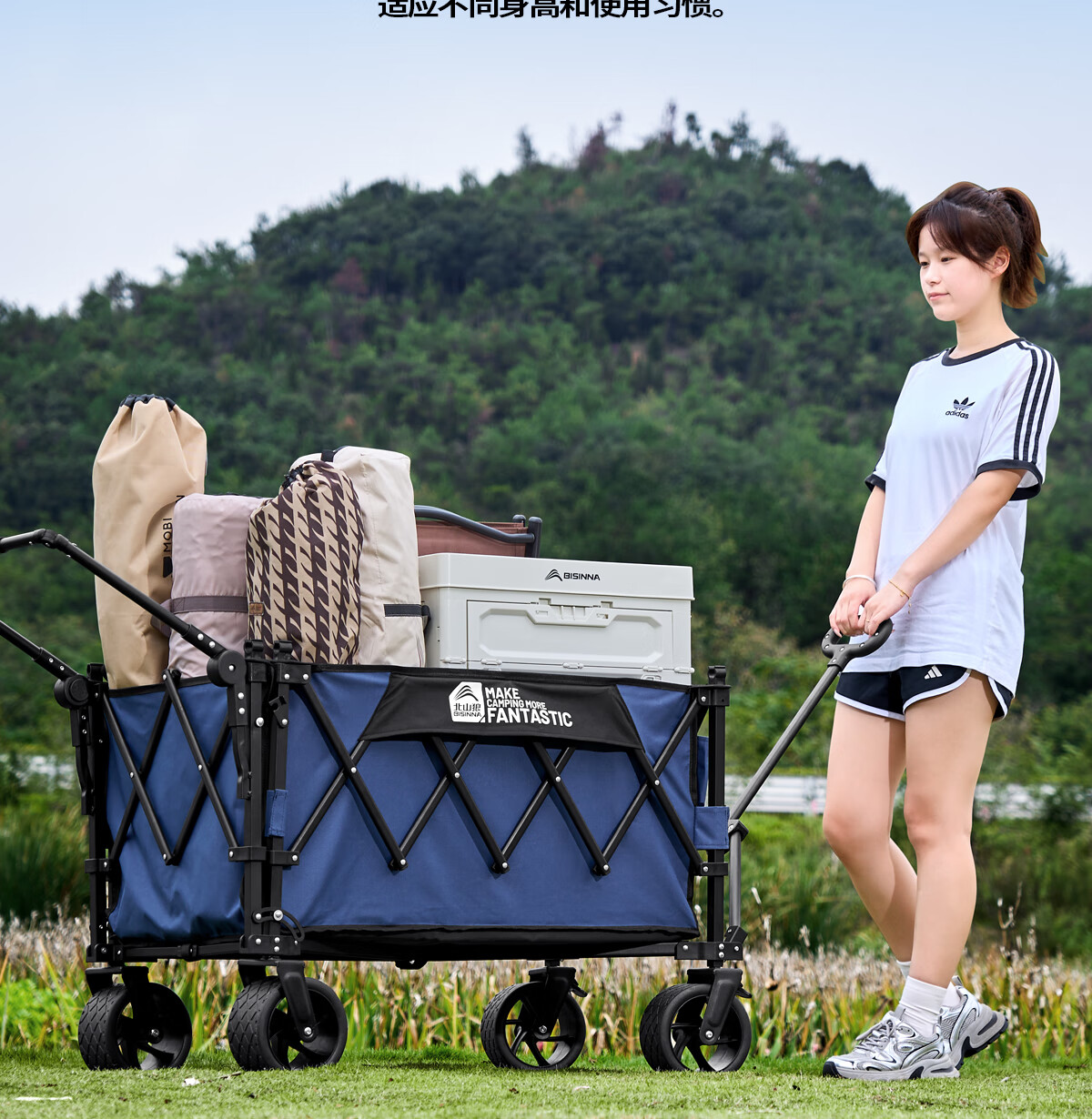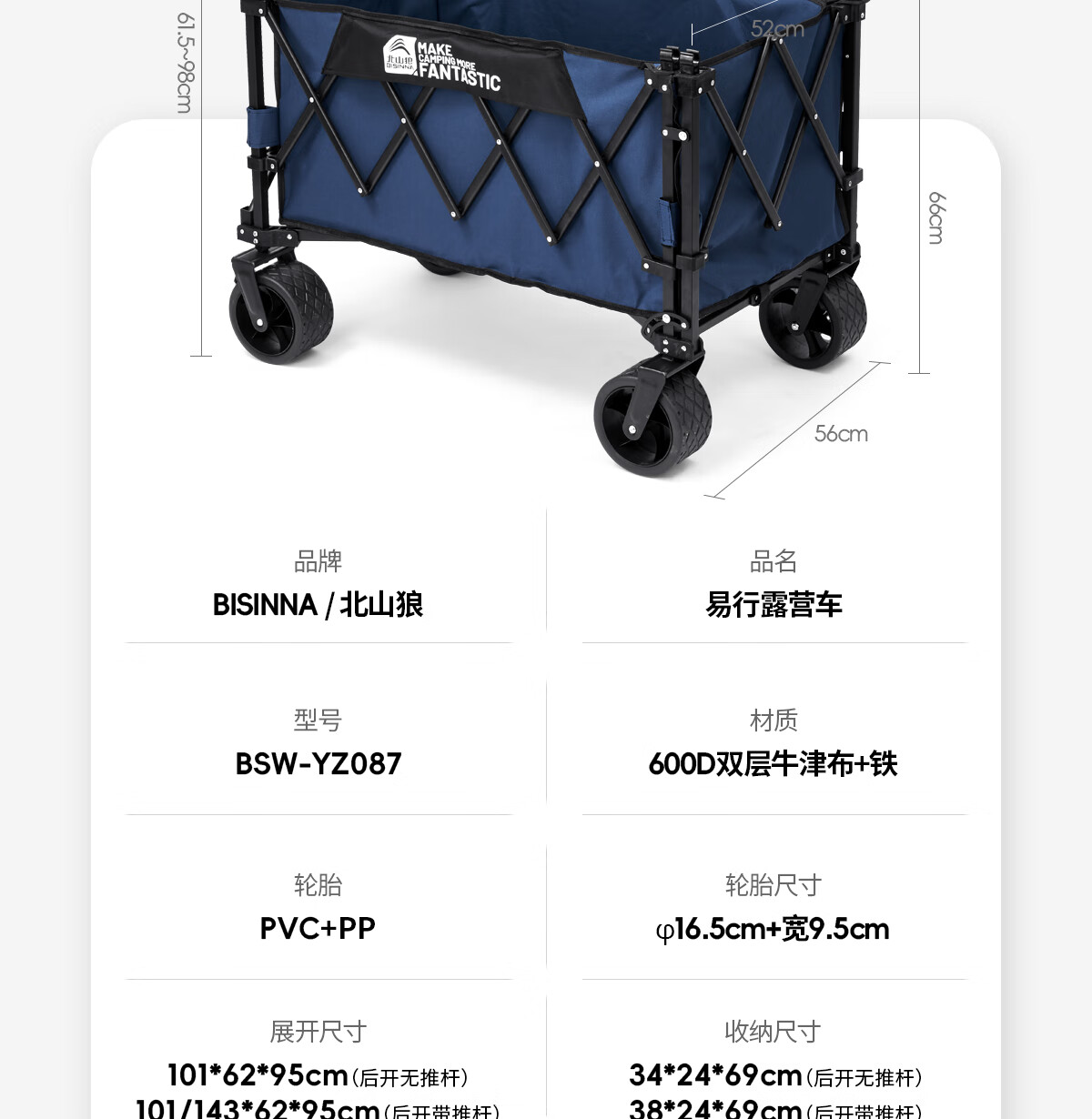 北山狼户外露营车聚拢大号营地车旅行野餐野营可推儿童遛娃手推车 海松绿【无推杆款】 650L 有刹车
