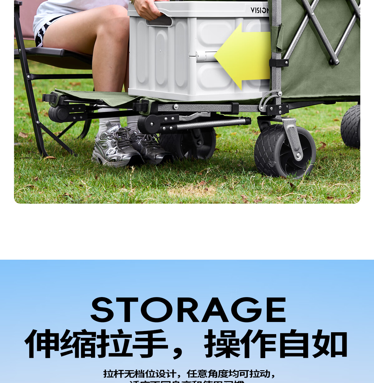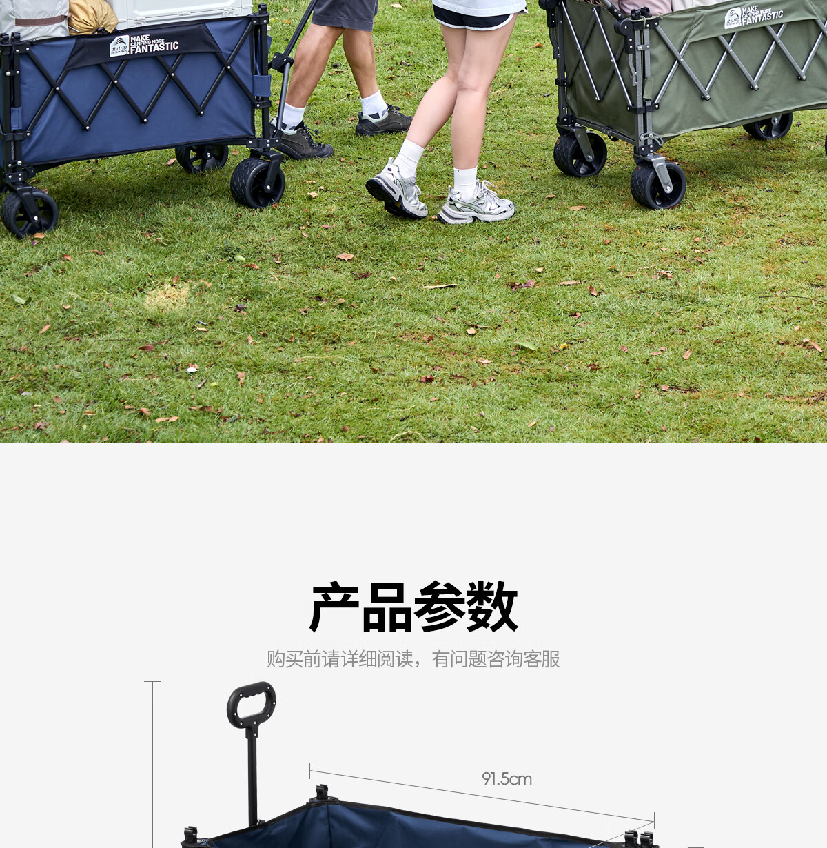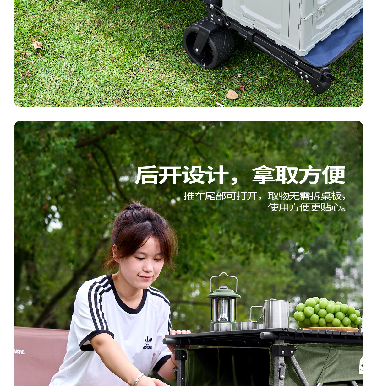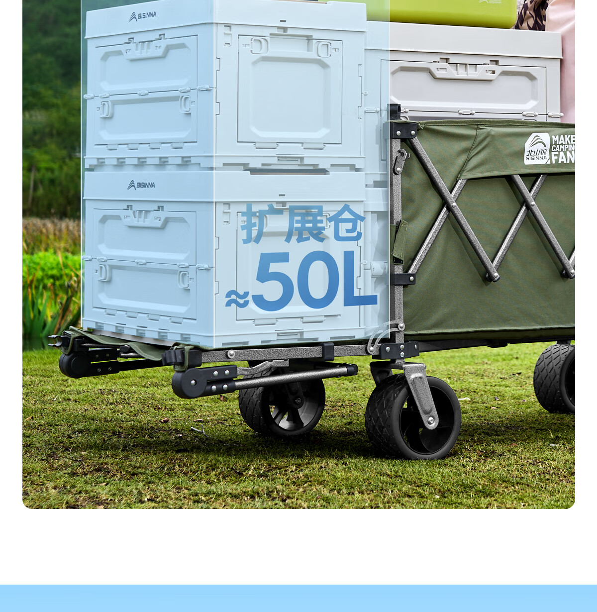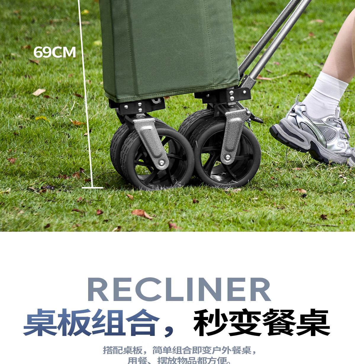 北山狼户外露营车聚拢大号营地车旅行野餐野营可推儿童遛娃手推车 海松绿【无推杆款】 650L 有刹车