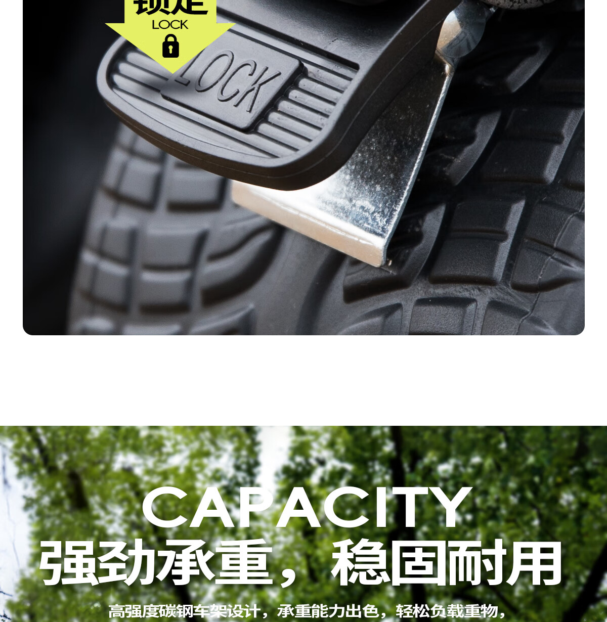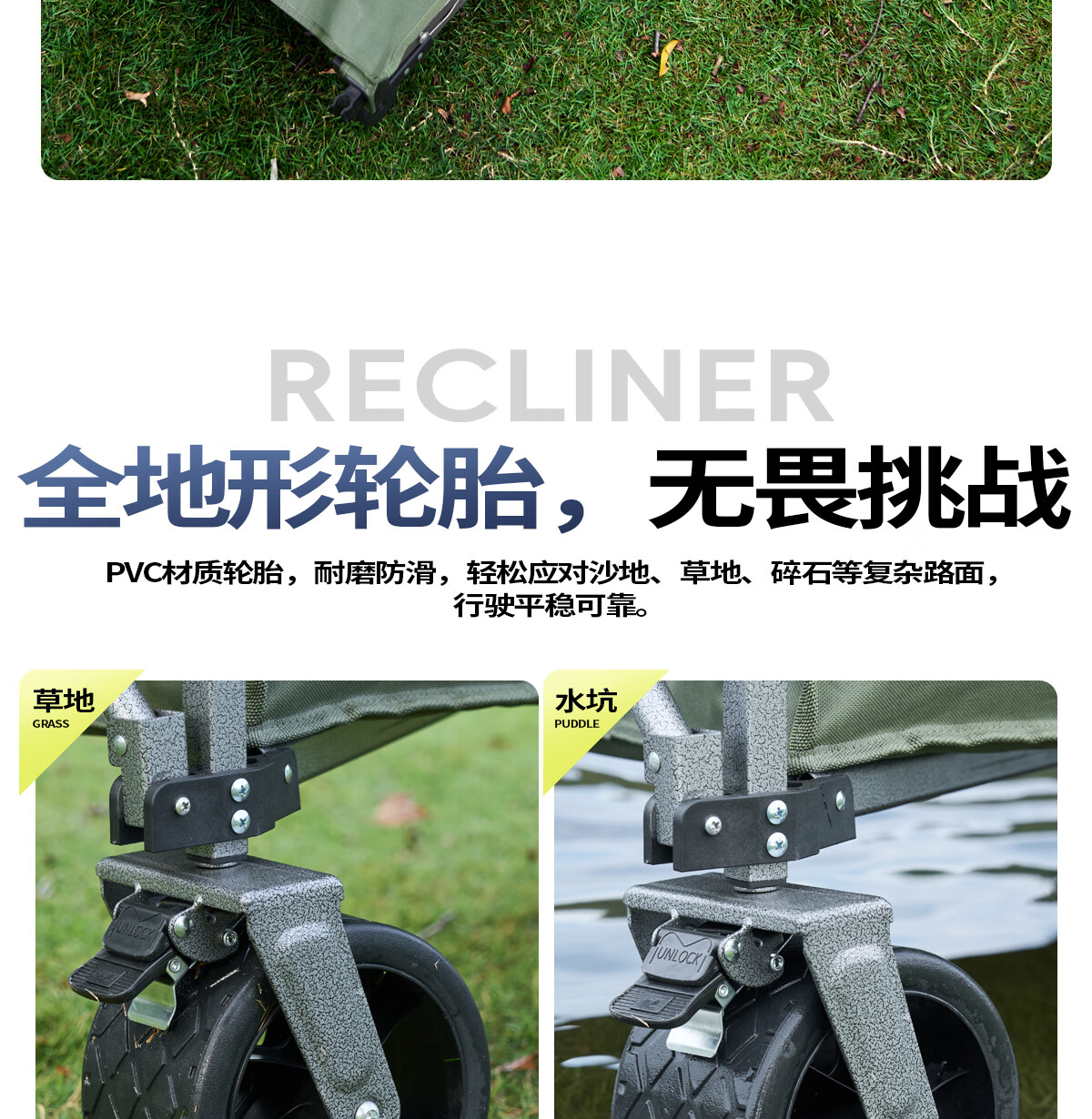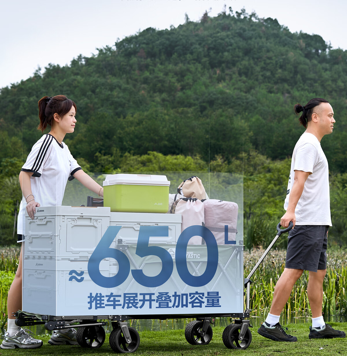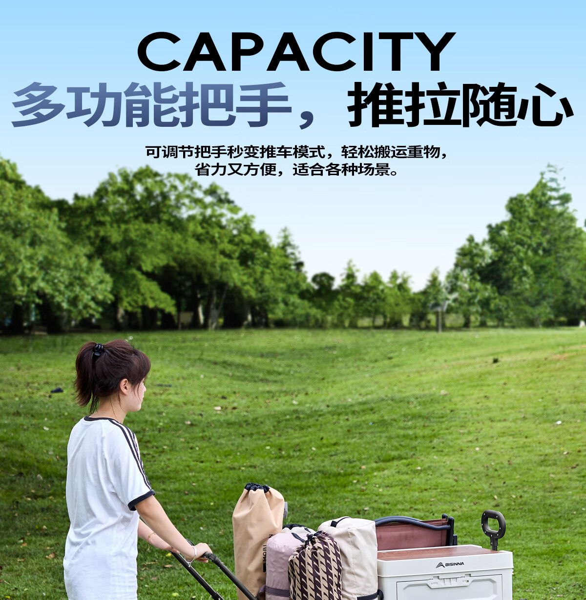 北山狼户外露营车聚拢大号营地车旅行野餐野营可推儿童遛娃手推车 海松绿【无推杆款】 650L 有刹车