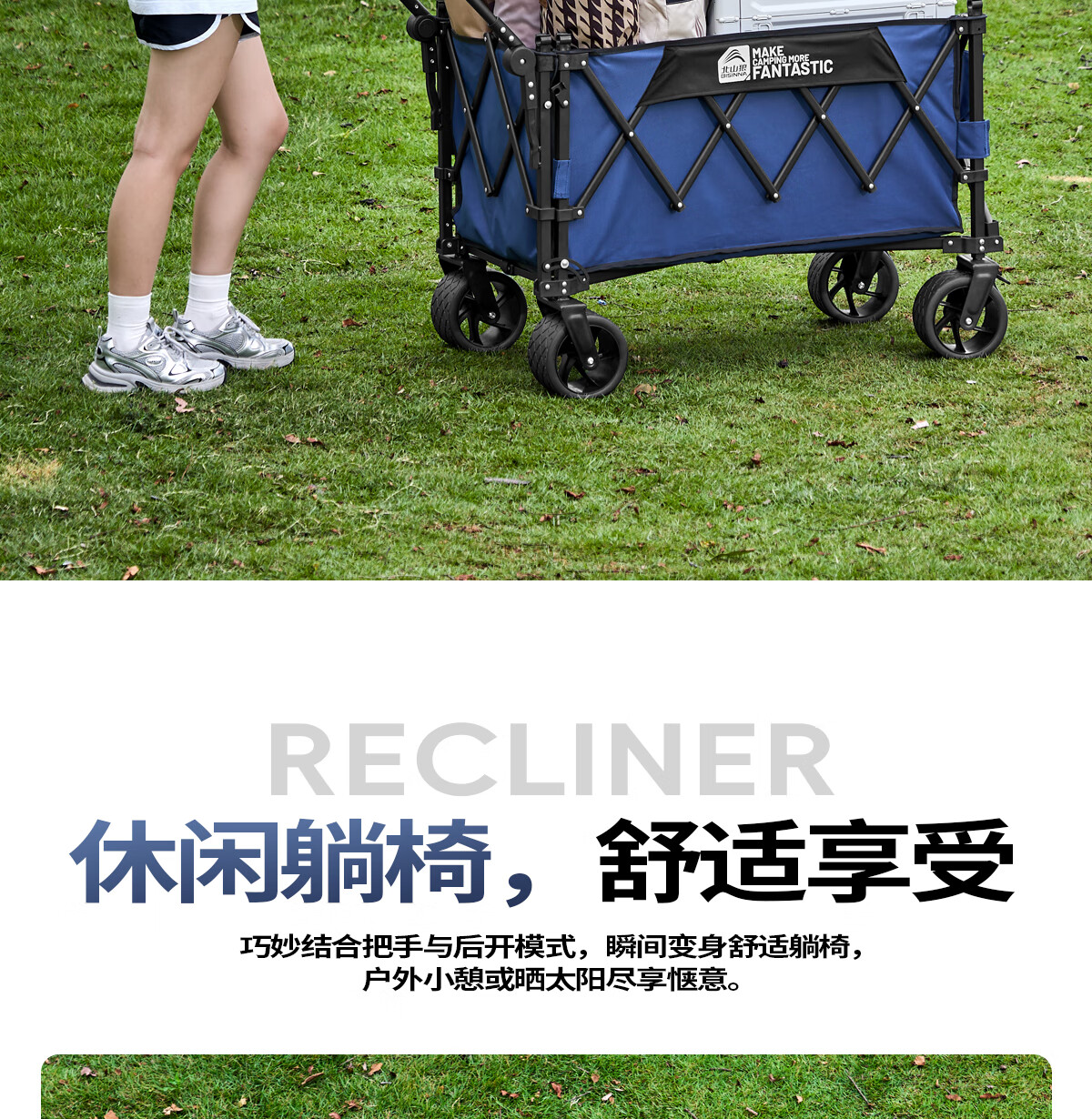 探险者户外露营车可升降围网手推车大容量聚拢营地车儿童可躺可折叠 曜石黑-聚拢网纱款【坦克轮】