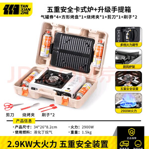 探险者卡式炉户外卡磁炉气露营便携式收纳箱围炉燃气炉瓦斯炉煤气灶 五重卡式炉【收纳箱+4气+烧烤配件】