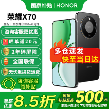 荣耀x70 新品5G手机 手机荣耀 国家补贴 幻夜黑 8GB+128GB全网通 官方标配【2年碎屏险】