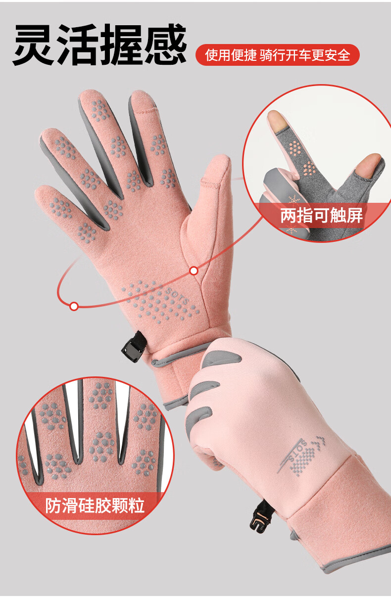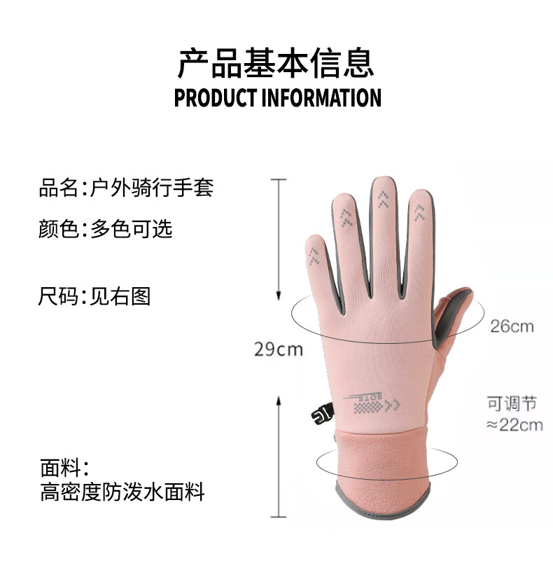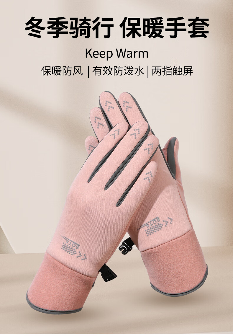 这款骑行手套加绒保暖,冬天骑车手不冷了,触屏设计方便,粉色挺好看,价格也实惠,物流很快,包装完好,整体还行。