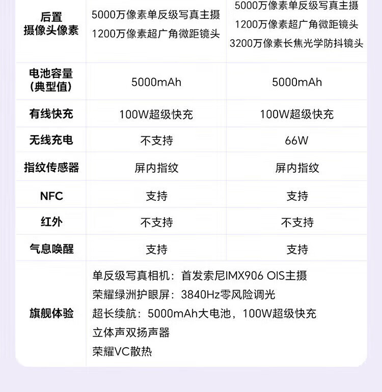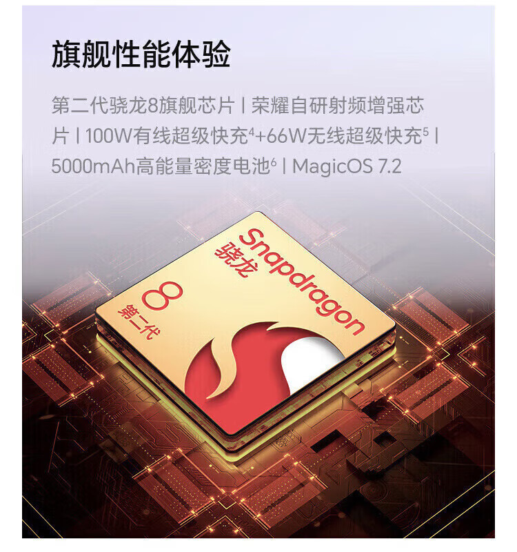 荣耀(HONOR)100 Pro 第二代骁龙8+旗舰芯片绿洲护眼屏 5G手机 迷蝶兰 16GB+512GB 单机+第三方品牌充电器+店保1年